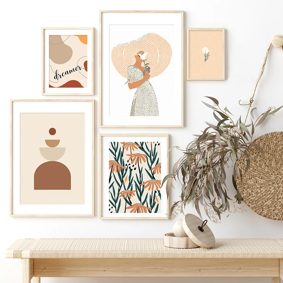 Абстрактная Геометрия в стиле бохо, цветочные плакаты, холст, насте...