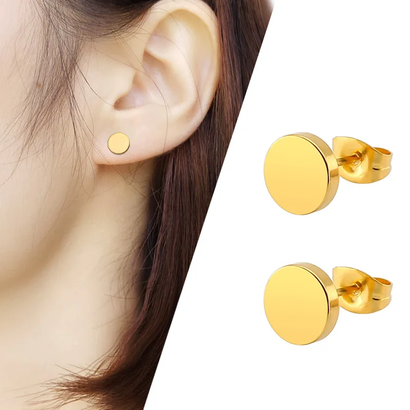 Серьги-гвоздики круглые золотистые из нержавеющей стали, 3-12 мм, 1...