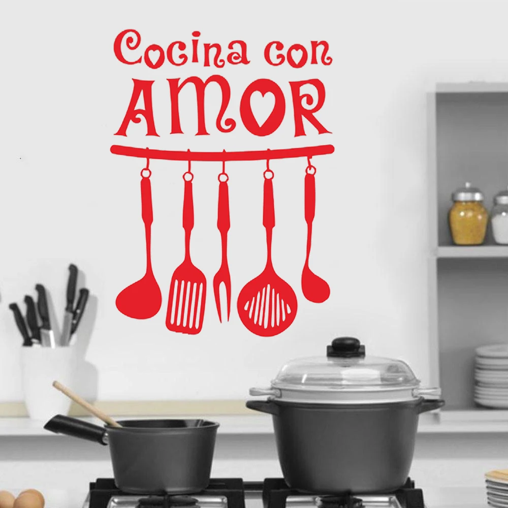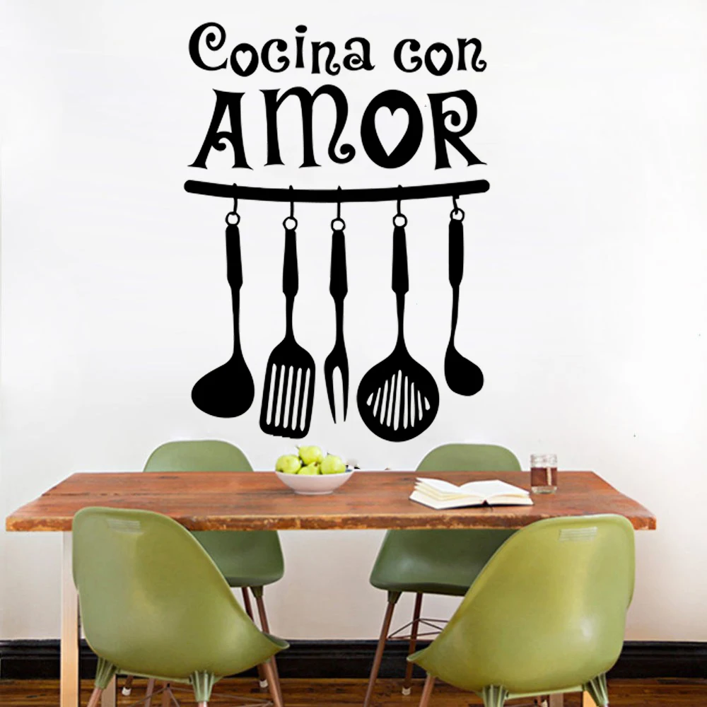 Испанская виниловая настенная наклейка Cocina Con Amor настенная художественная Цитата Наклейки Водонепроницаемая настенная домашняя наклейка для кухни декоративная наклейка RU181