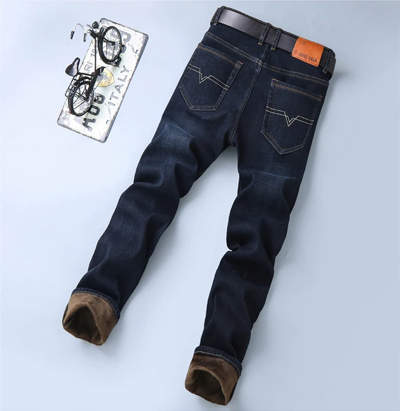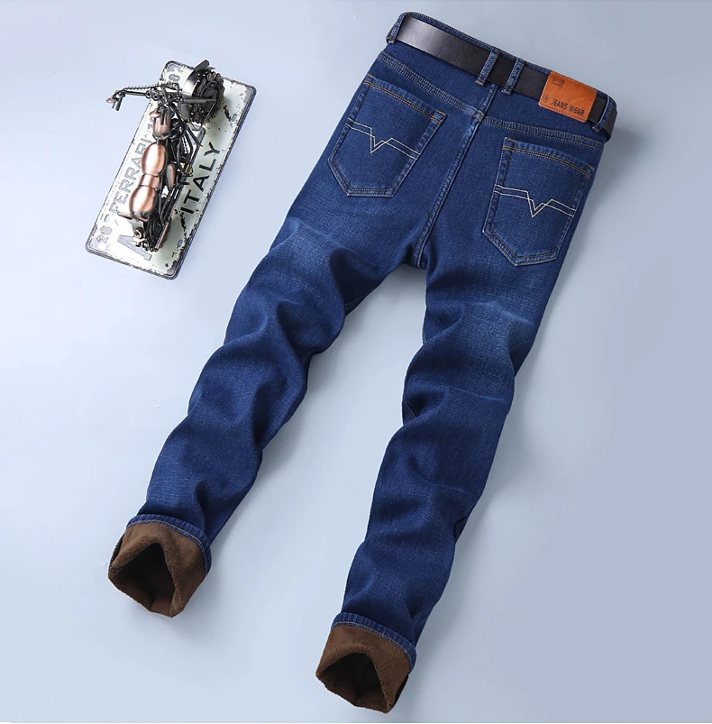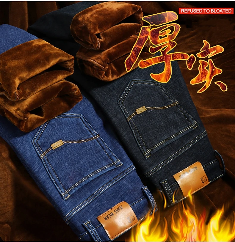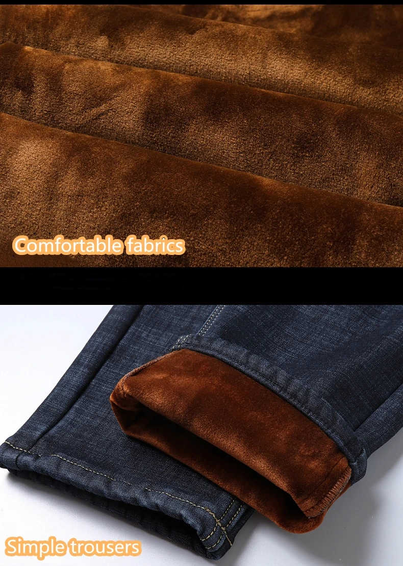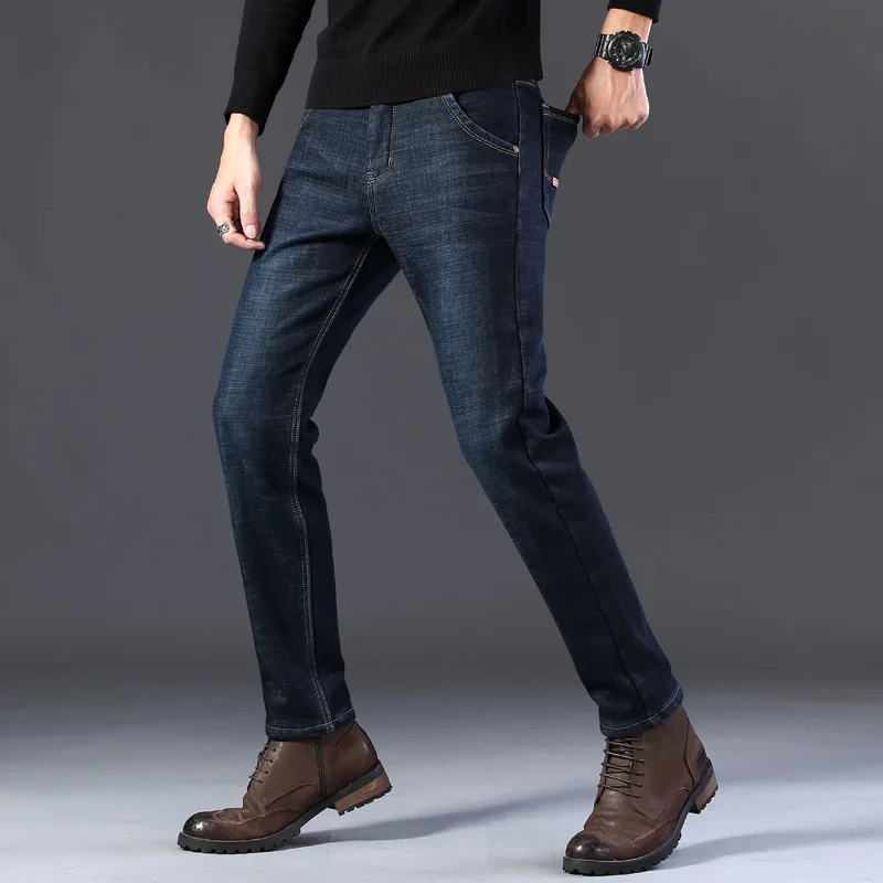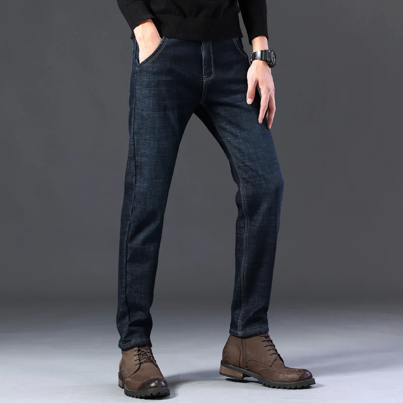 Мужские бархатные толстые модные джинсы, классические трендовые Свободные повседневные Стрейчевые джинсовые брюки, новинка зимы 2021, мужские брендовые теплые брюки