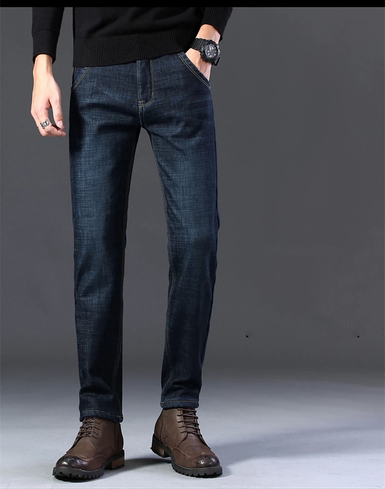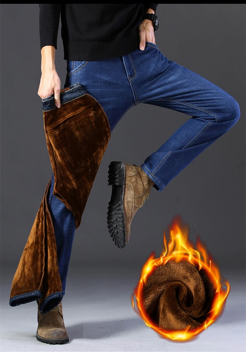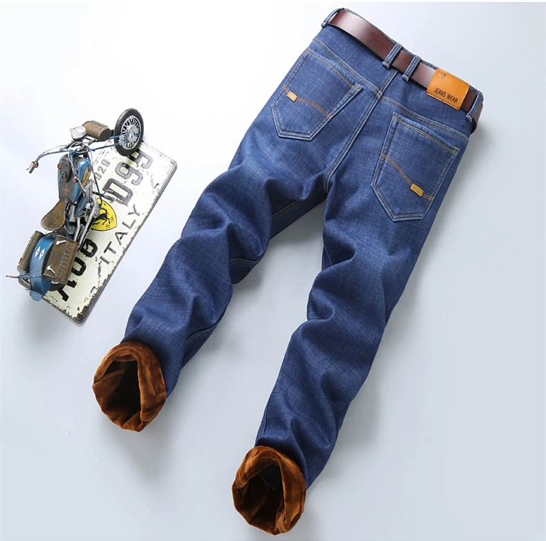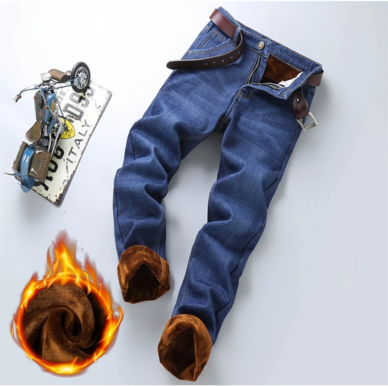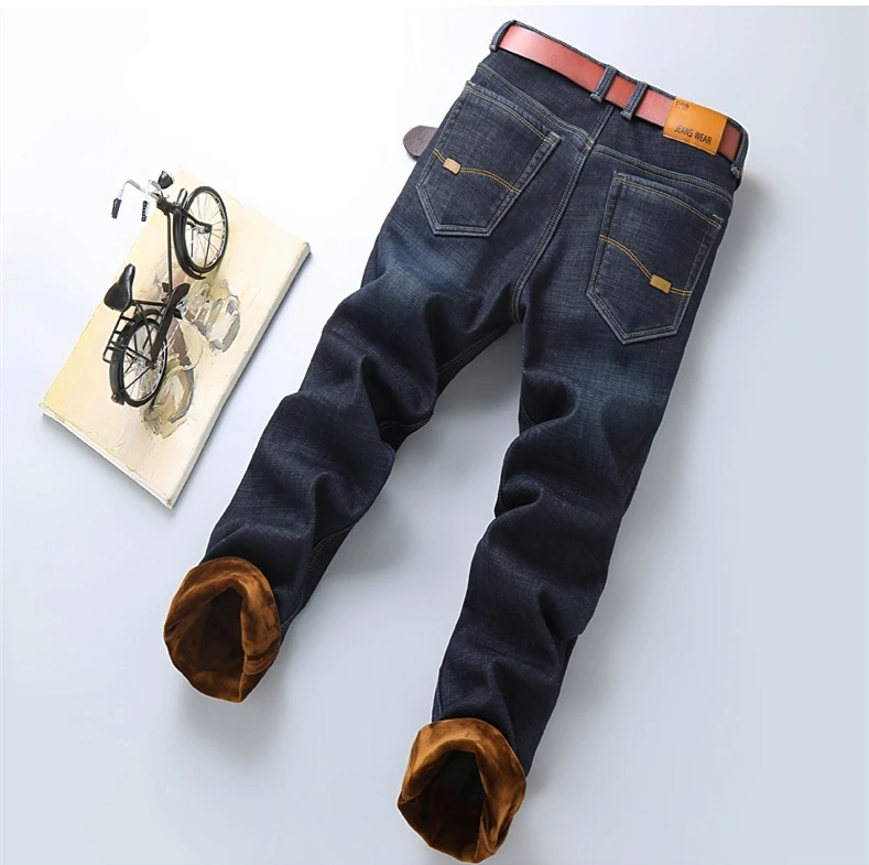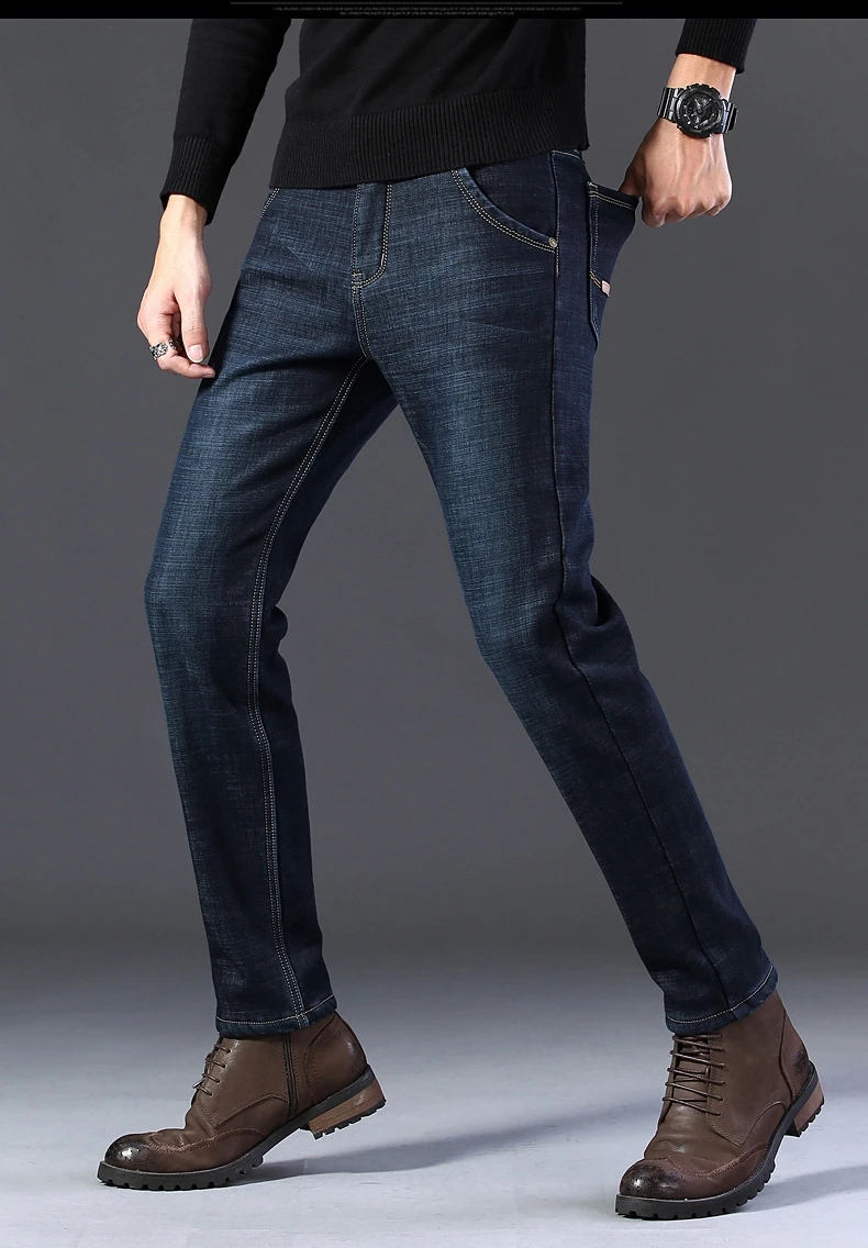 Мужские бархатные толстые модные джинсы, классические трендовые Свободные повседневные Стрейчевые джинсовые брюки, новинка зимы 2021, мужские брендовые теплые брюки