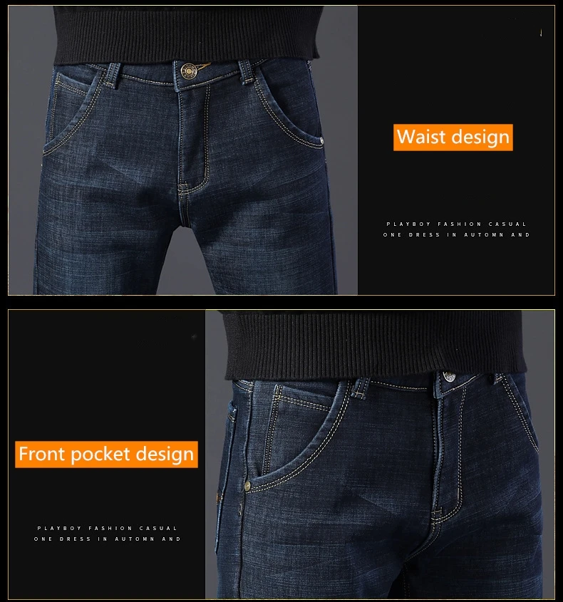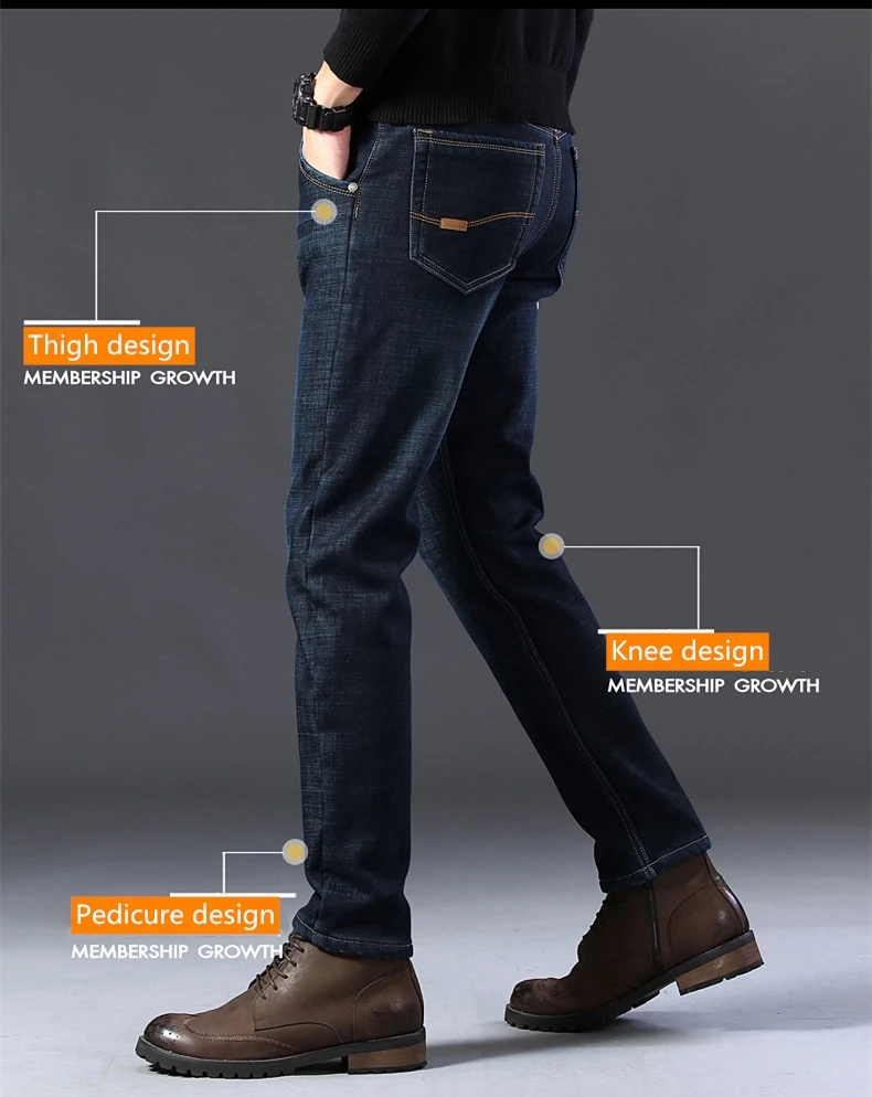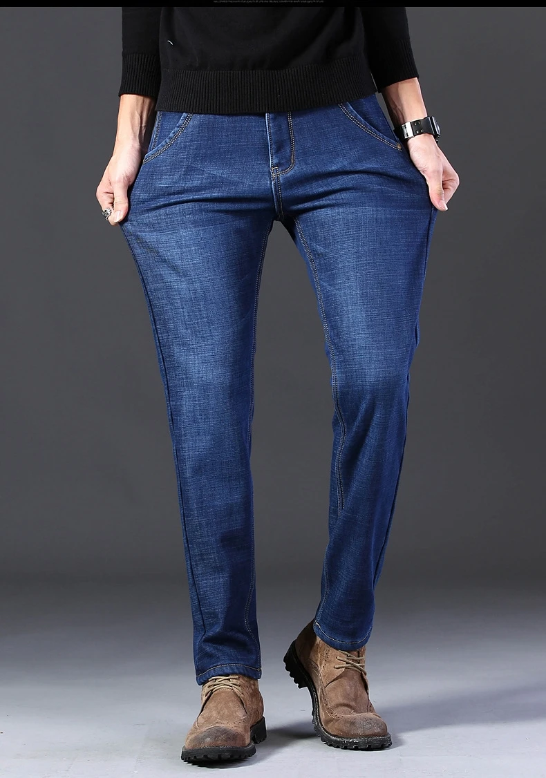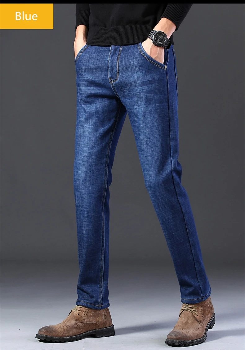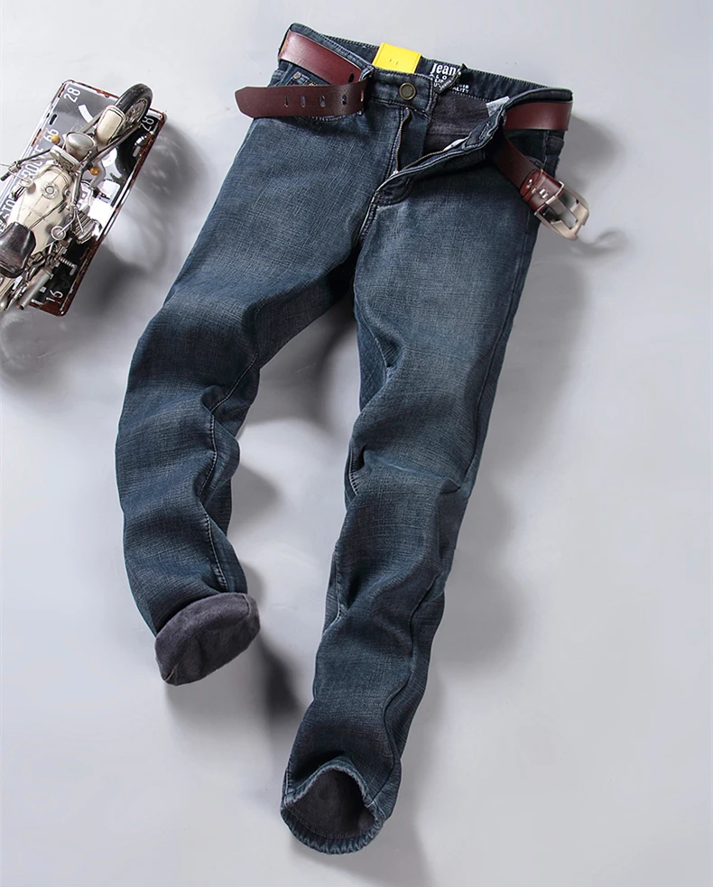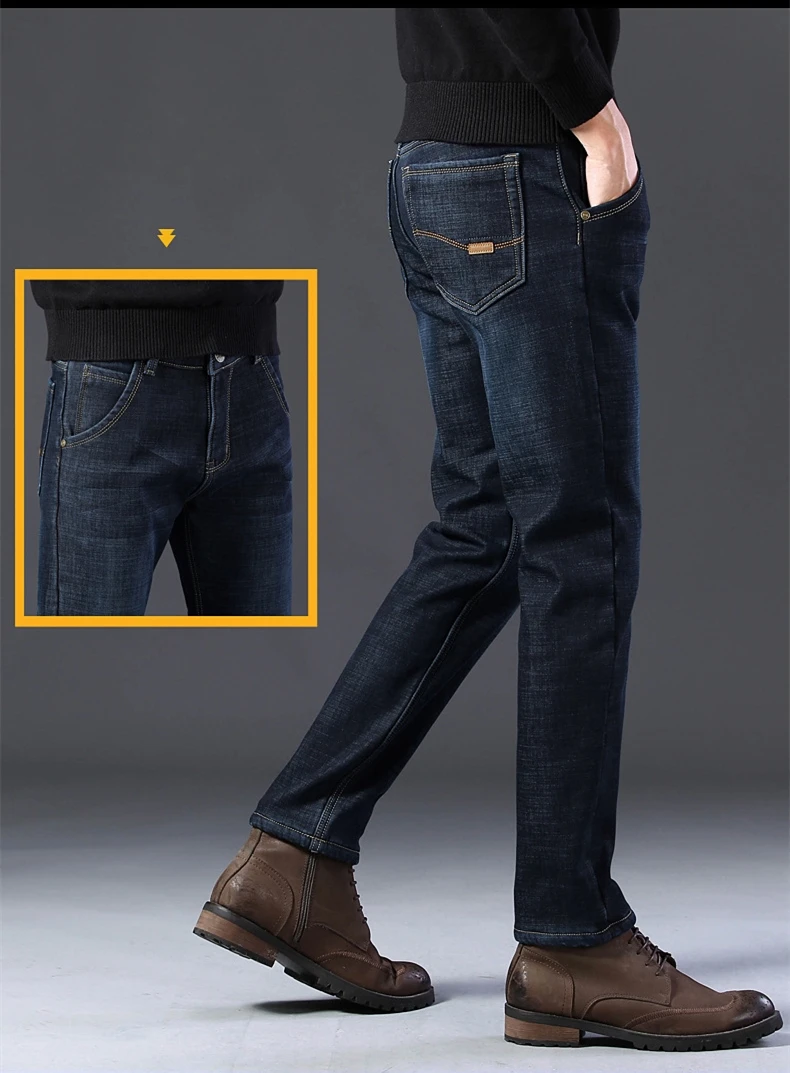 Мужские бархатные толстые модные джинсы, классические трендовые Свободные повседневные Стрейчевые джинсовые брюки, новинка зимы 2021, мужские брендовые теплые брюки