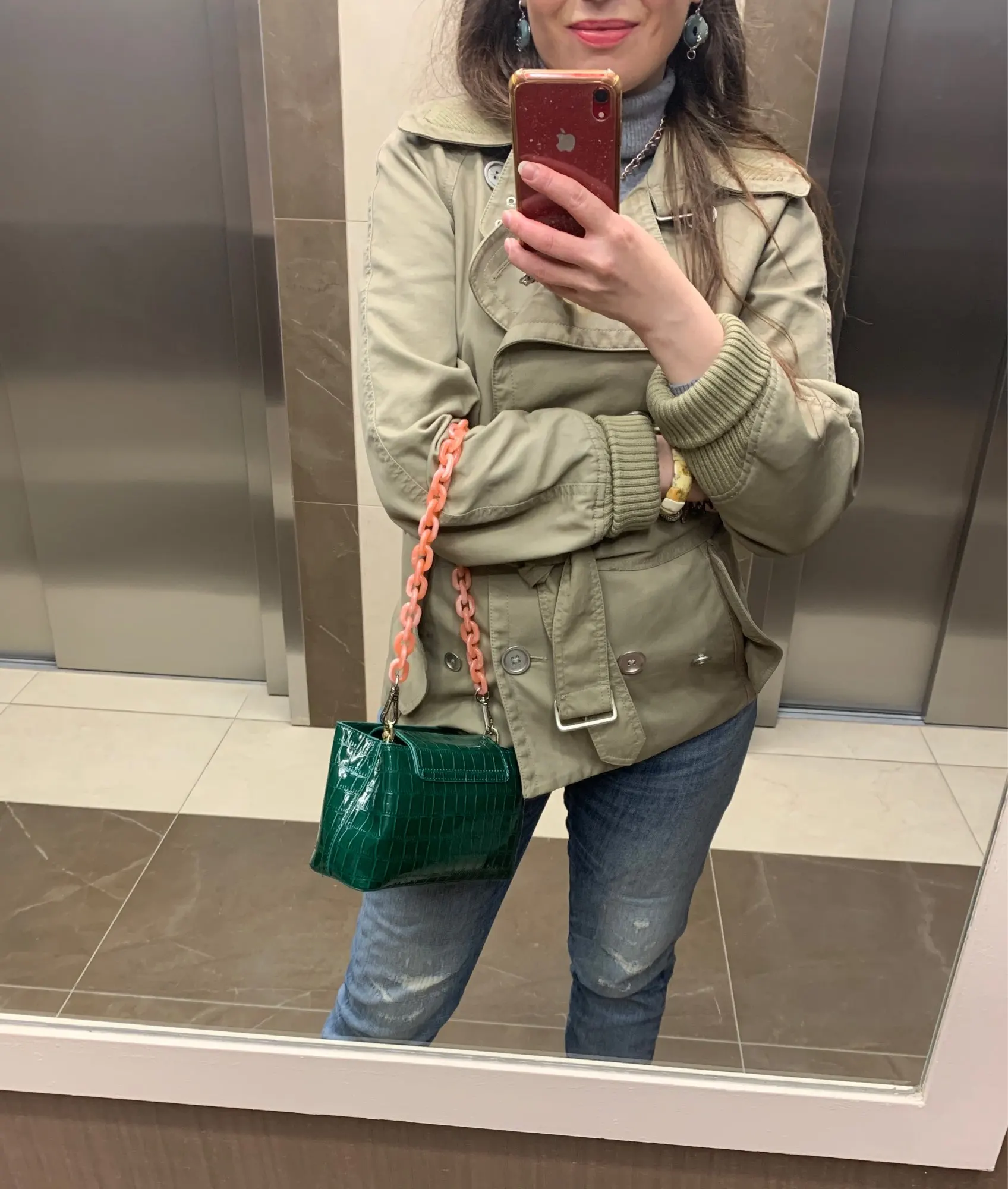 Заказала синий, но его не оказалось в наличии( предложили замену из наличия - в результате получила очень красивый лососёвый розовый!!! Мне кажется ко многому на самом деде подходит! Очень легкий, при этом надежная застежка! Отлично упаковано от царапин на фурнитуре! Просто замечательно!