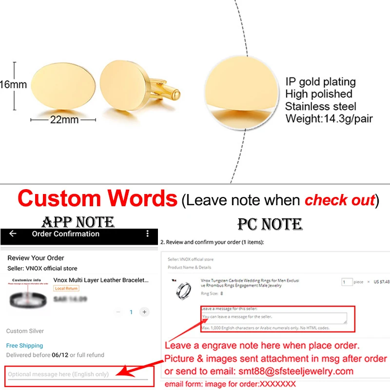 Мужские овальные запонки Vnox, 2 шт., глянцевые металлические запонки из нержавеющей стали, подарок для Муж папа