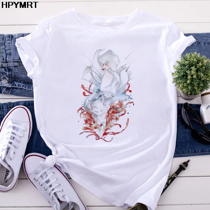 Футболка женская с коротким рукавом и принтом, в стиле Харадзюку