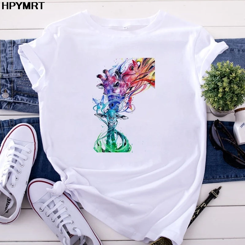 Мода каблуки новые акварельные высокие печататься Tshirt женщин 90s...