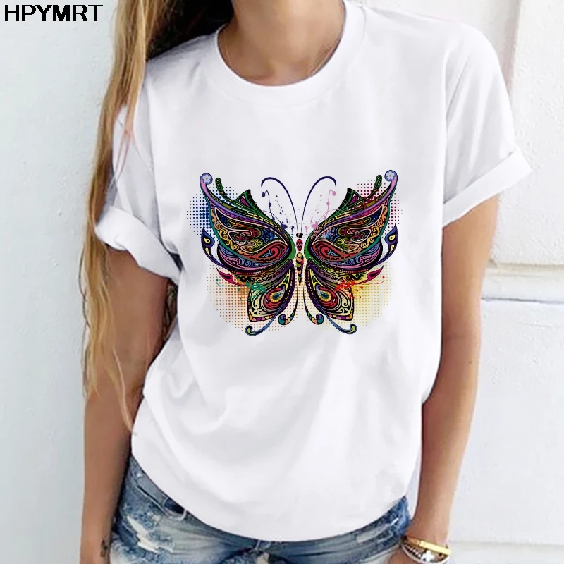 Женская футболка с принтом бабочки, топы, футболки с коротким рукавом, повседневная одежда Ulzzang, kawaii harajuku, Прямая поставка, винтажная женская футболка