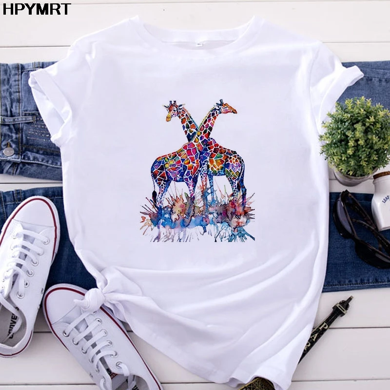 Женская футболка с принтом Харадзюку, Элегантная футболка с принтом...