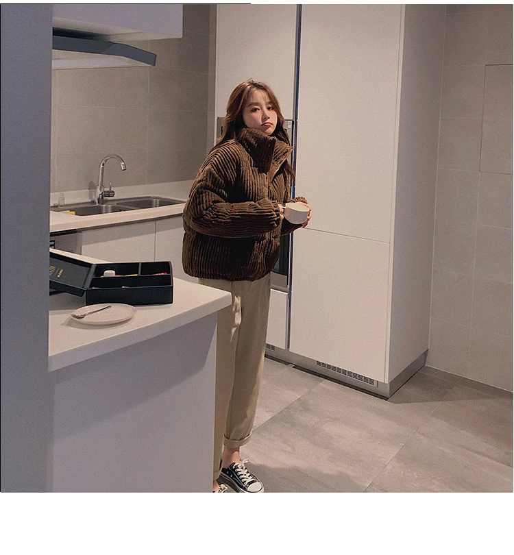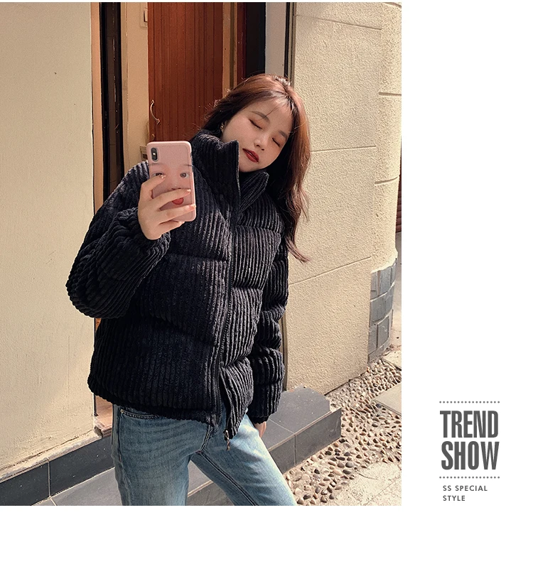 Женская Вельветовая куртка, однотонная теплая парка с хлопковой подкладкой, свободного покроя, черного цвета, для зимы, 2020