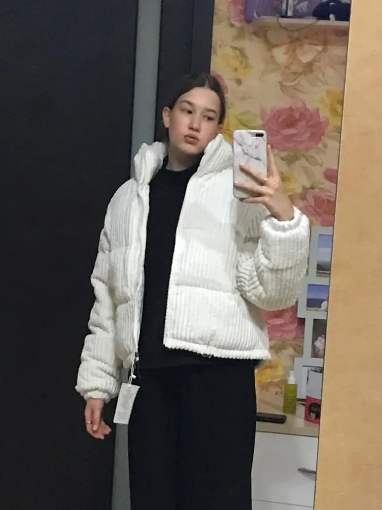 вообщем, заказала размер L на рост 164, маленькая, короткие рукава, надела куртку на костюм, через пару минут сняла и на костюме осталось много толи это пух, то ли что, наполнитель в общем, просто вылазит, торчат нитки, где-то даже розовая, хотя куртку я заказала желтую. да, на ощупь она ооочень приятная, прям ну вот, хоть обнимайся с этой курткой, но вот эти недочёты портят((( жаль, что так получилось, продавец хороший, приятный в общении, надеюсь, у них такого больше не будет и что это просто случай на миллион, хорошей вам работы)