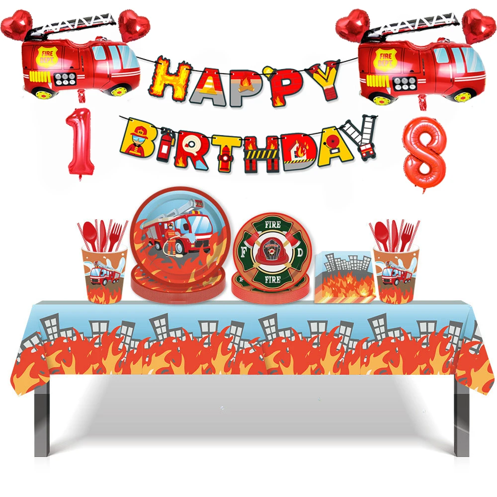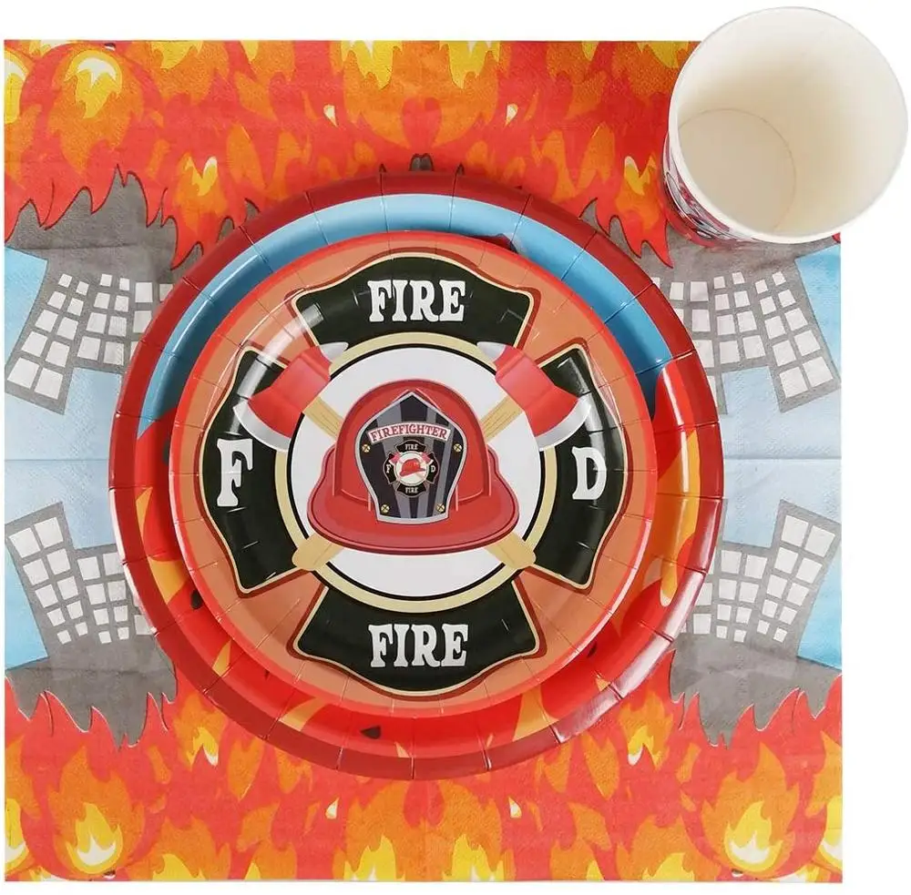 Пожарная машина тема одноразовая посуда Дети День Рождения Вечеринка бумажная салфетка под тарелку кружку пожарный мальчик ребенок душ партии Декор поставки