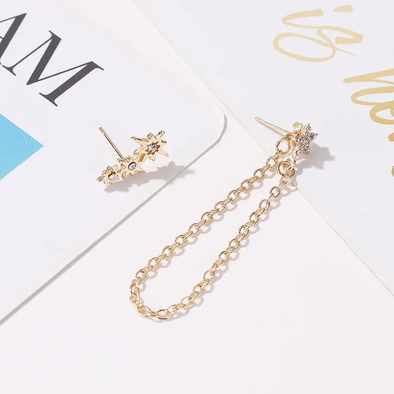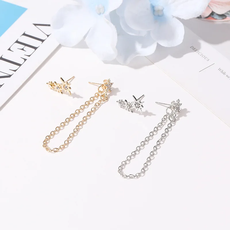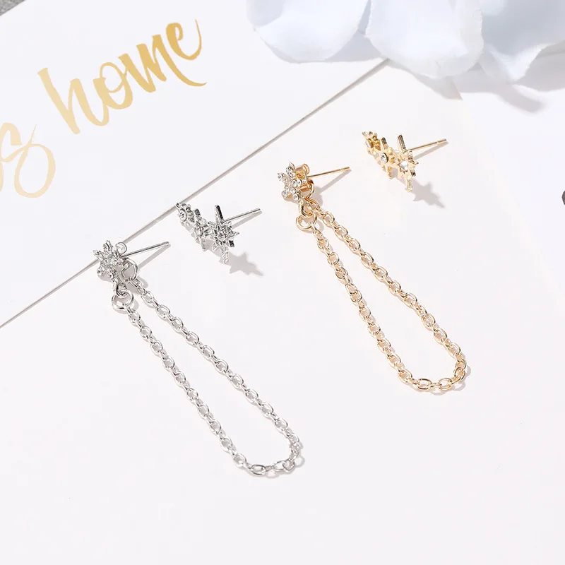 Серьги-подвески в форме звезды, стразы, сплав, запонки, позолоченные, посеребренные, 2 шт.компл.
