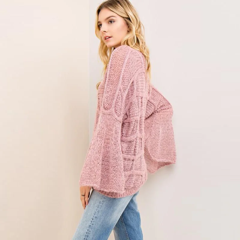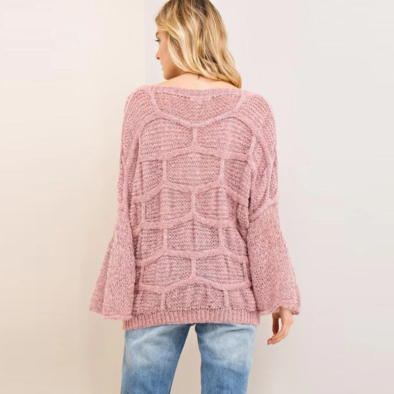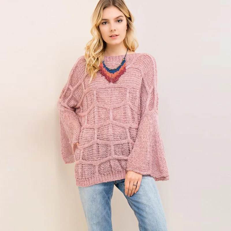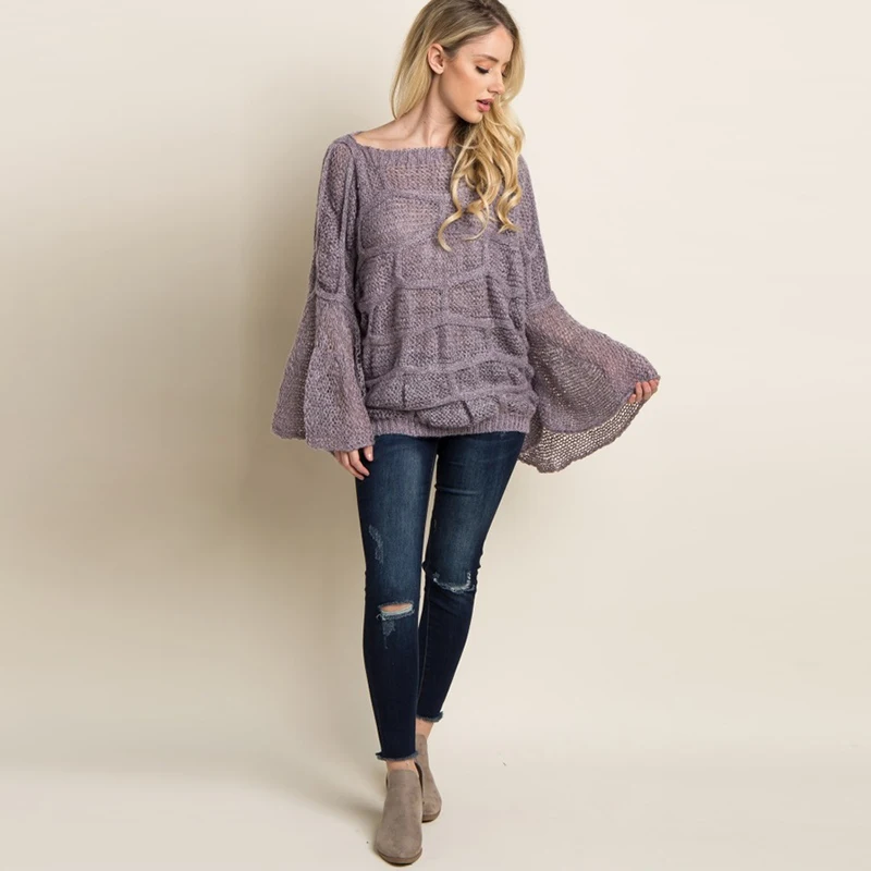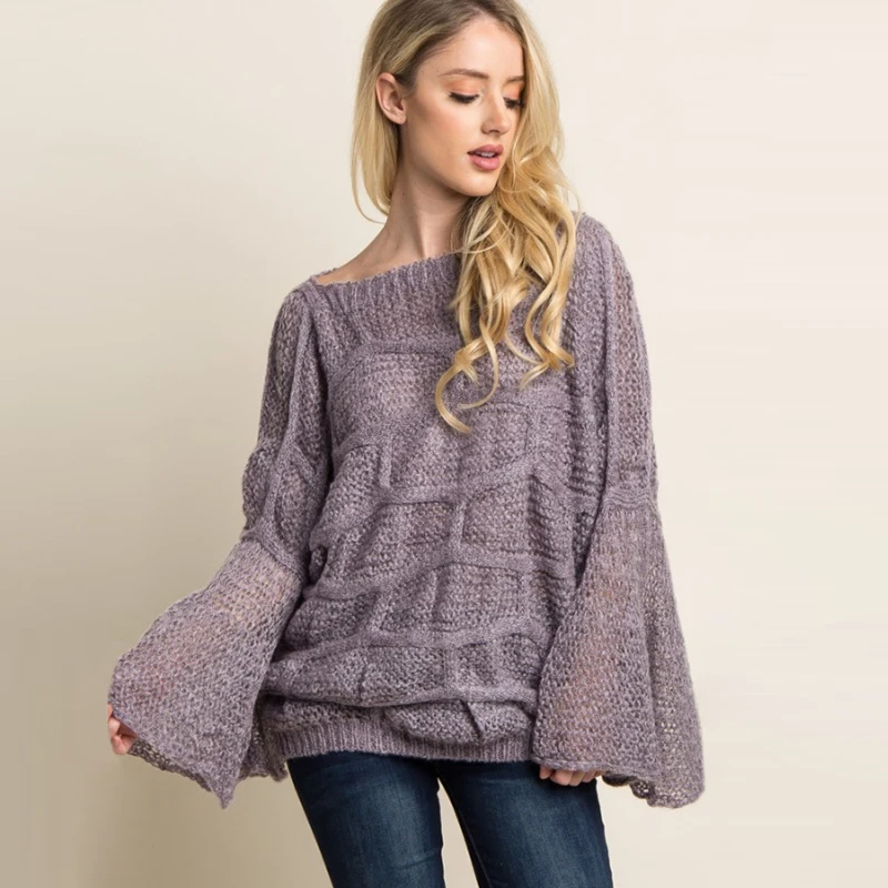Umekoосенне-весенние свитера для женщин, однотонный вязаный тонкий свитер с вырезом лодочкой, пуловер с расклешенными рукавами, Модный Свитер оверсайз