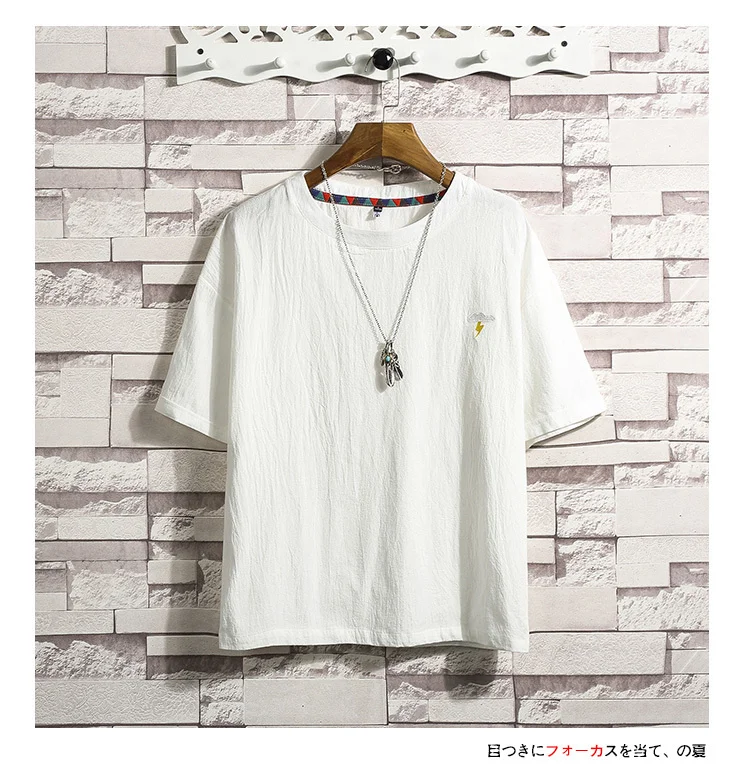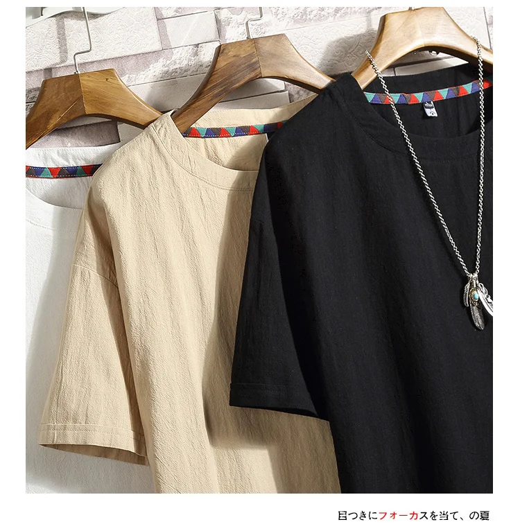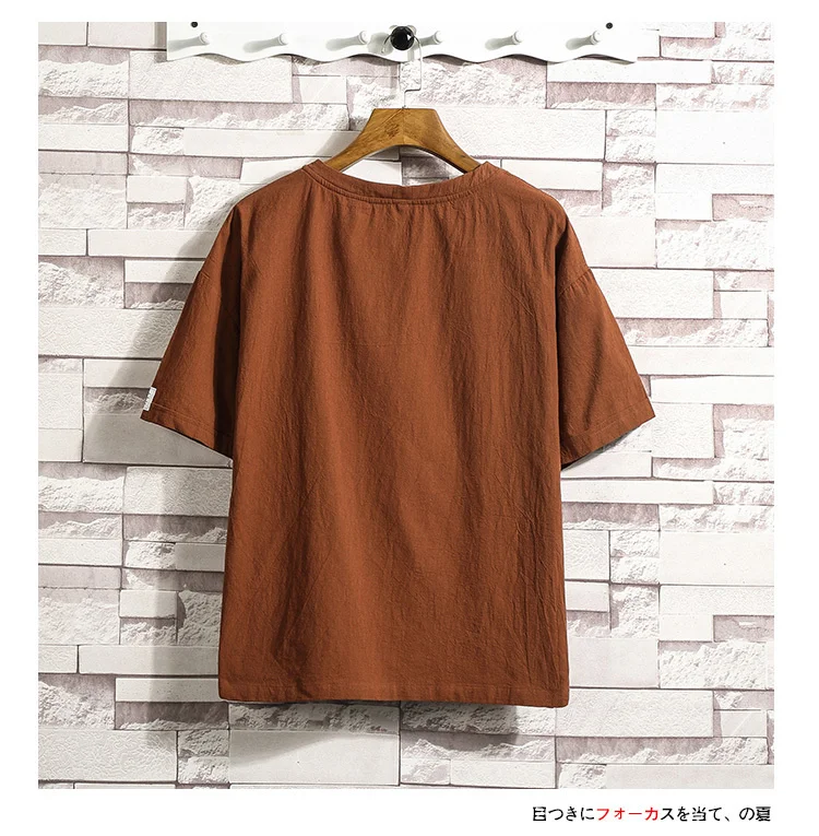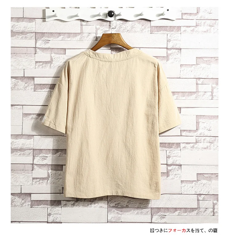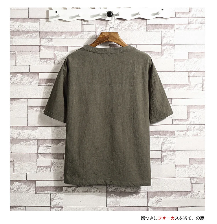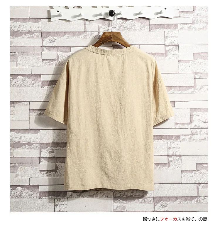 Футболка мужская льняная на пуговицах, модная однотонная Повседневн...