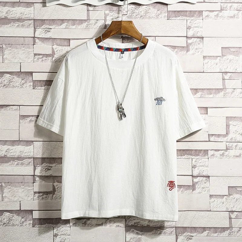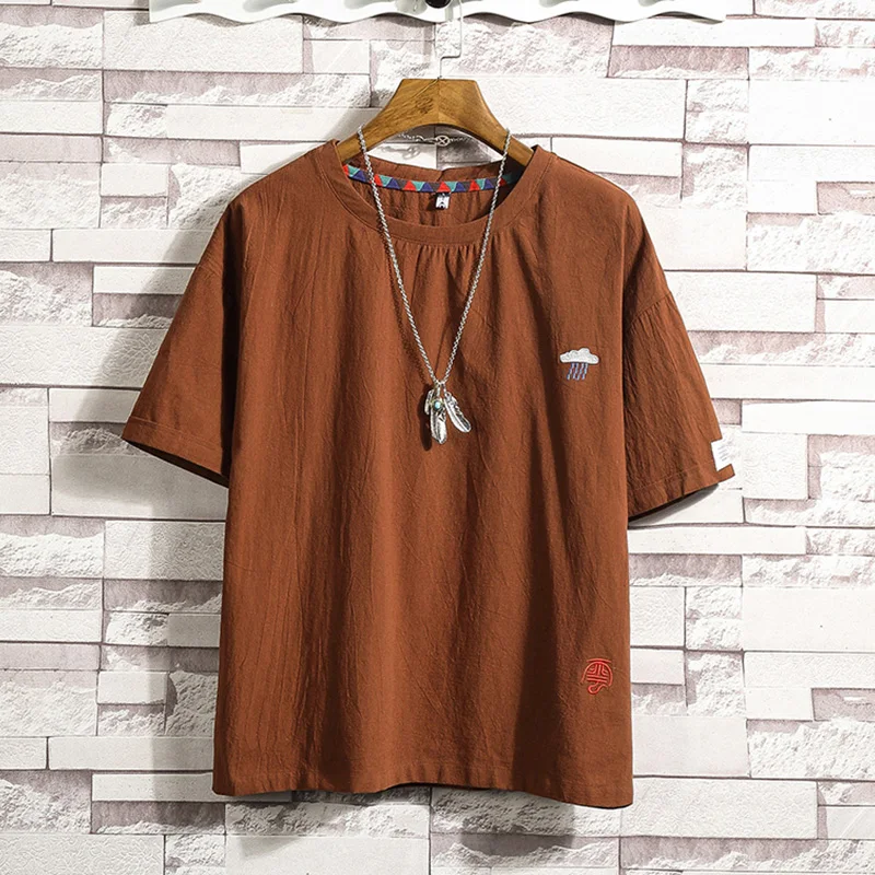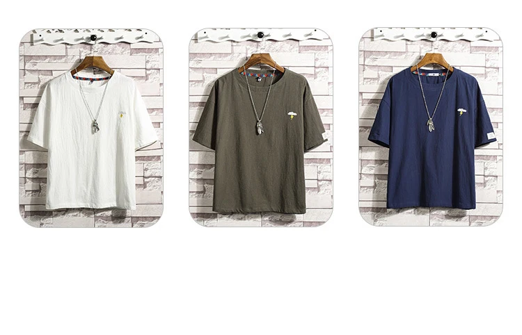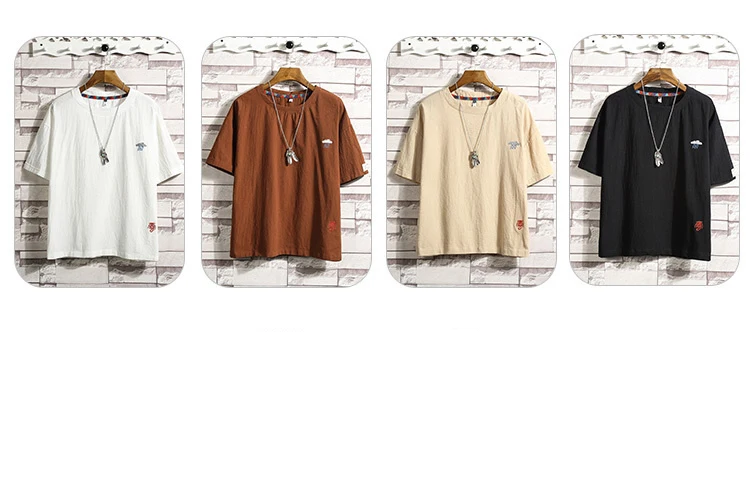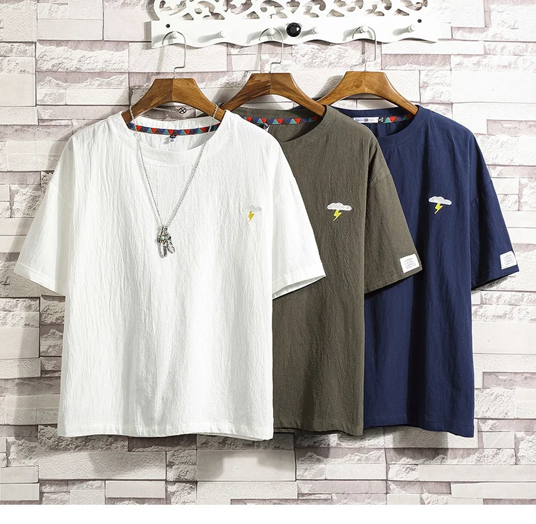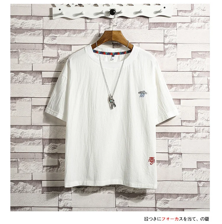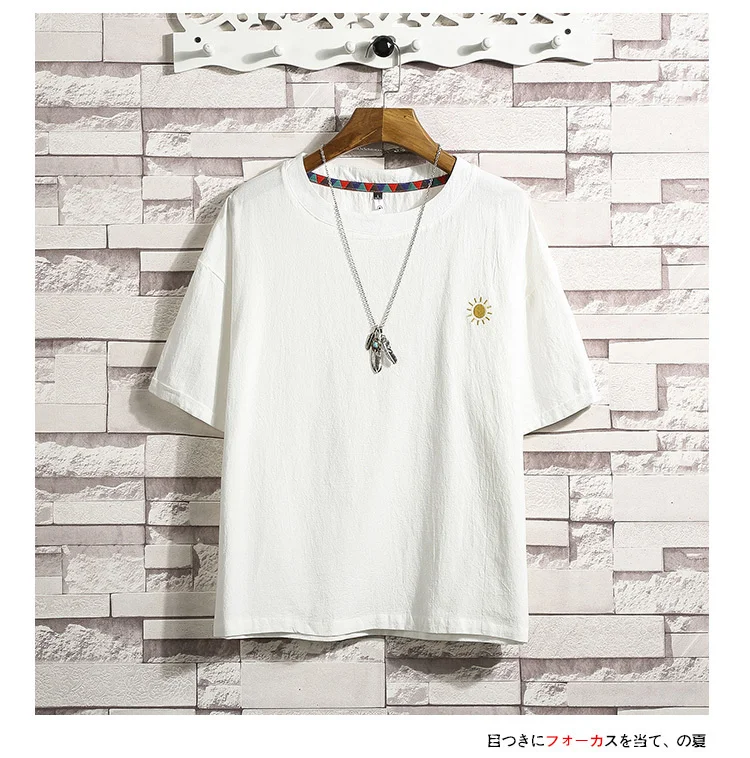 Футболка мужская льняная на пуговицах, модная однотонная Повседневн...