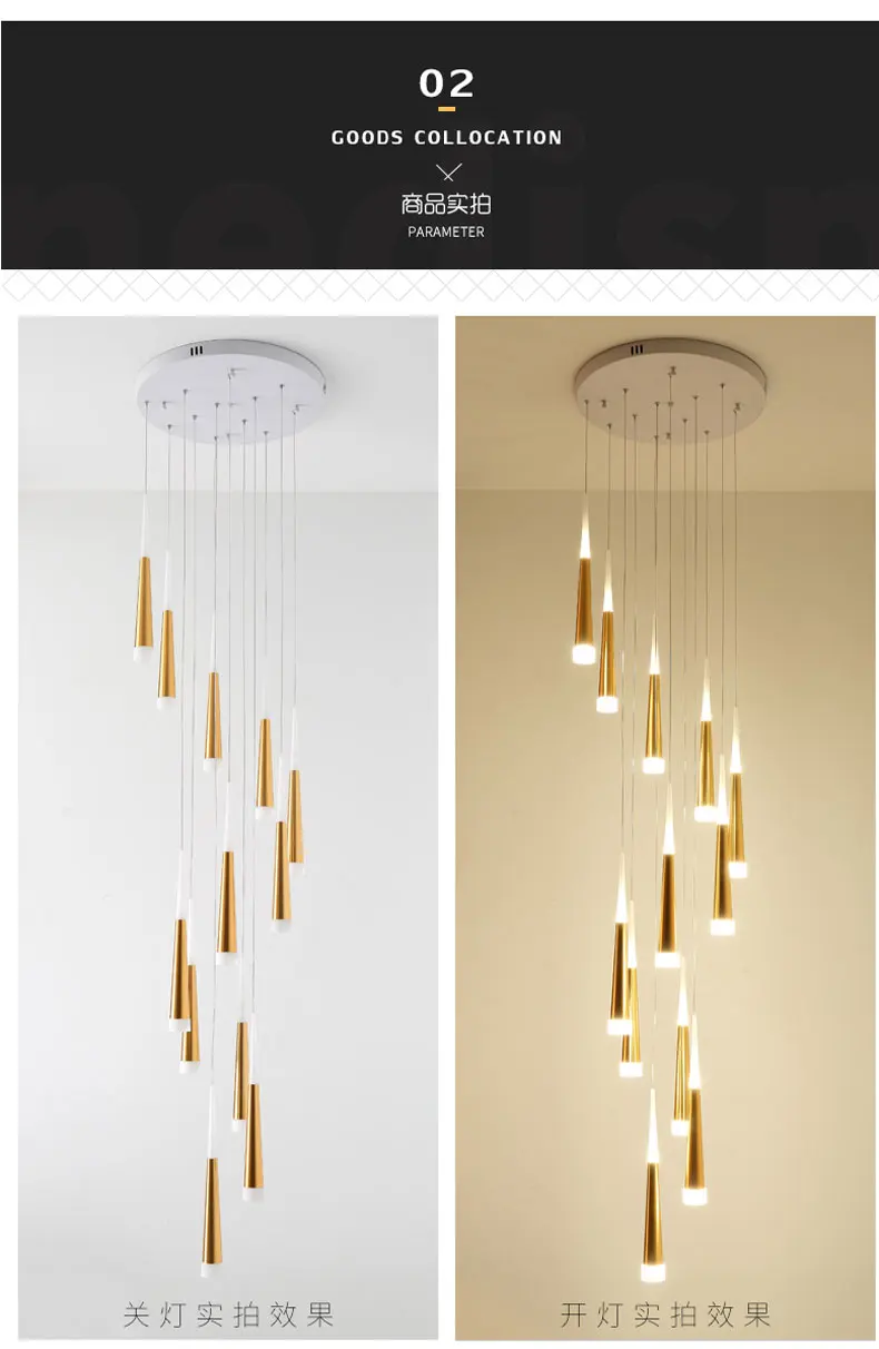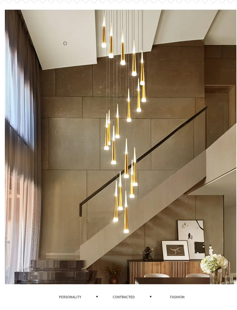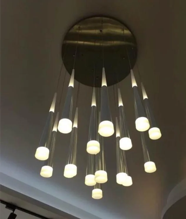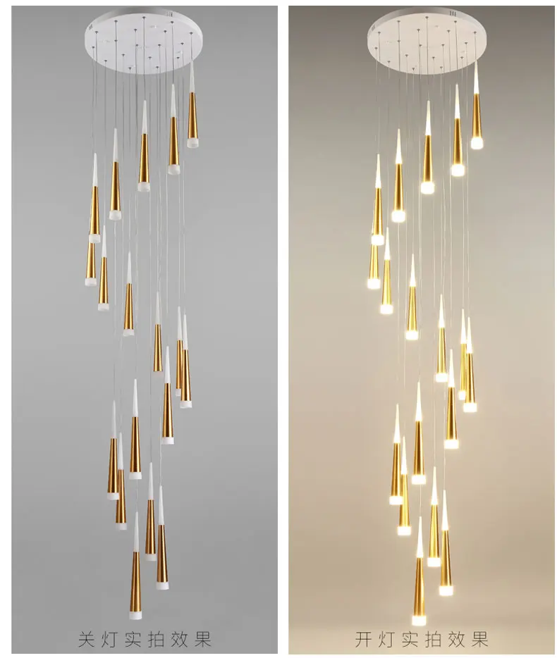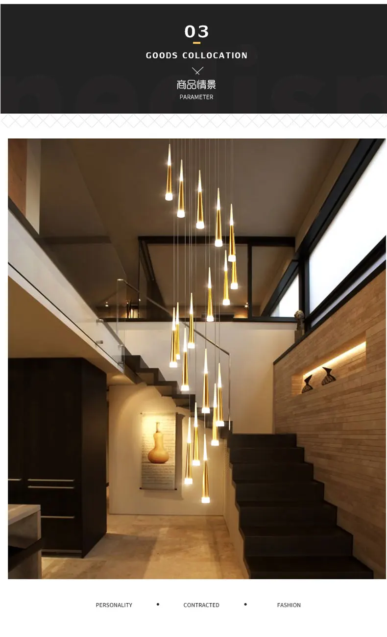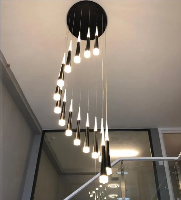 Поворотная лестница светодиодный ная люстра, трубчатый подвесной светильник на светильник-конус градусов, современный креативный дуплекс, Длинные люстры для здания
