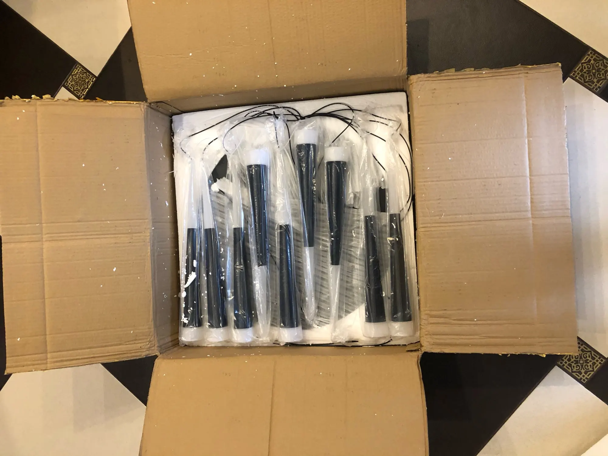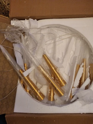 Великолепно! Как в описании - всё соответствует цвету, размеру и заявленным материалам. Люстра пришла в собранном виде. Очень современно и стильно! Доставка долго. Коробка была без внешних повреждений, но внутри пенопласт в крошку превратился и всё гремело внутри.