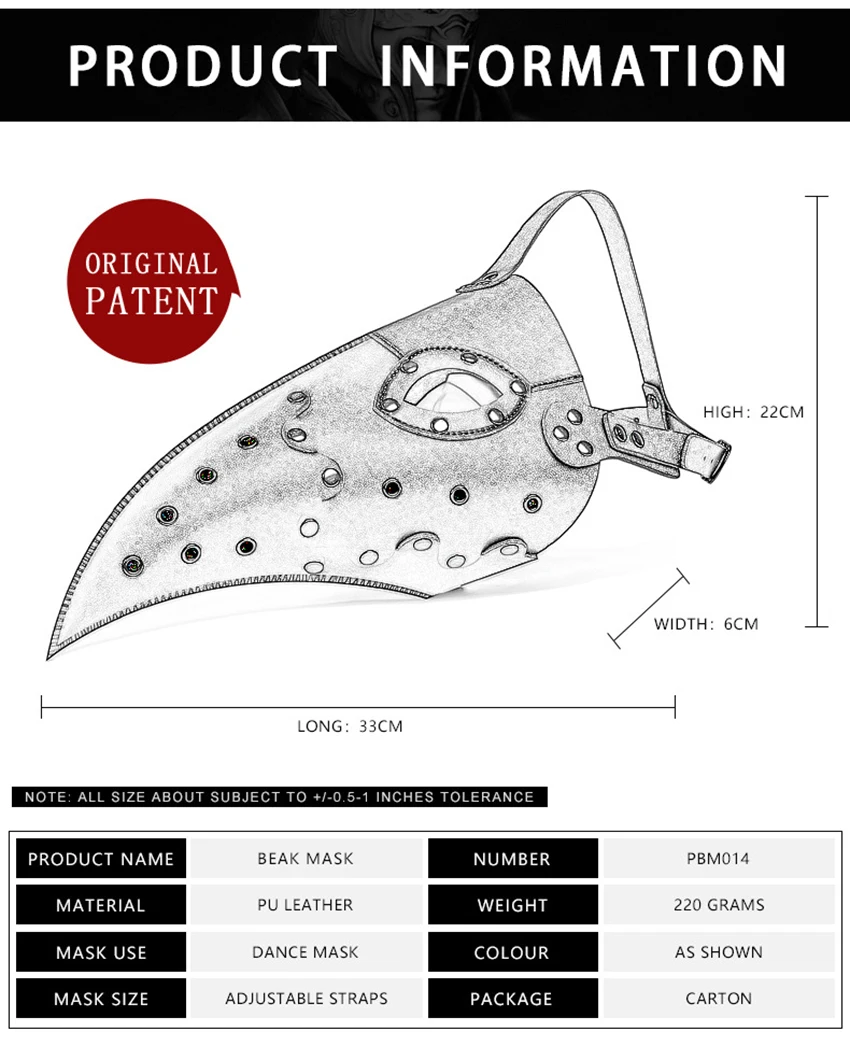 ОписаниеМатериал:Из искусственной кожиОдин размер подходит для большинства людейПовод: Хэллоуин, вечерние костюмы для косплея, Маскарад