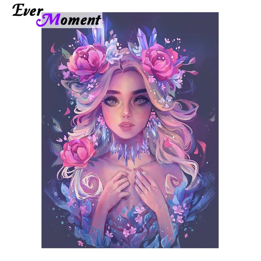 Ever Moment Набор алмазной краски мультяшная красивая девушка с цветами в темноте ручная работа домашний декор Краска бриллиантами 5L217