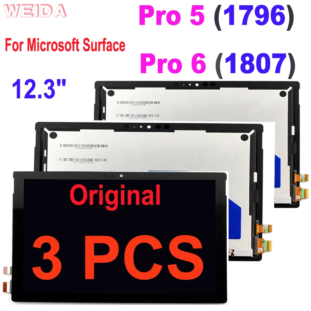 3 шт. Оригинальный сенсорный ЖК-дисплей для Microsoft Surface Pro 5 1796 Pro 6 1807, дигитайзер в сборе для Surface Pro5 Pro6 LP123WQ1