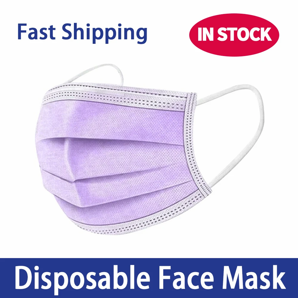 Маска для лица одноразовая, 3-слойная, Нетканая, дышащая, фиолетовая, 1050100200 шт.