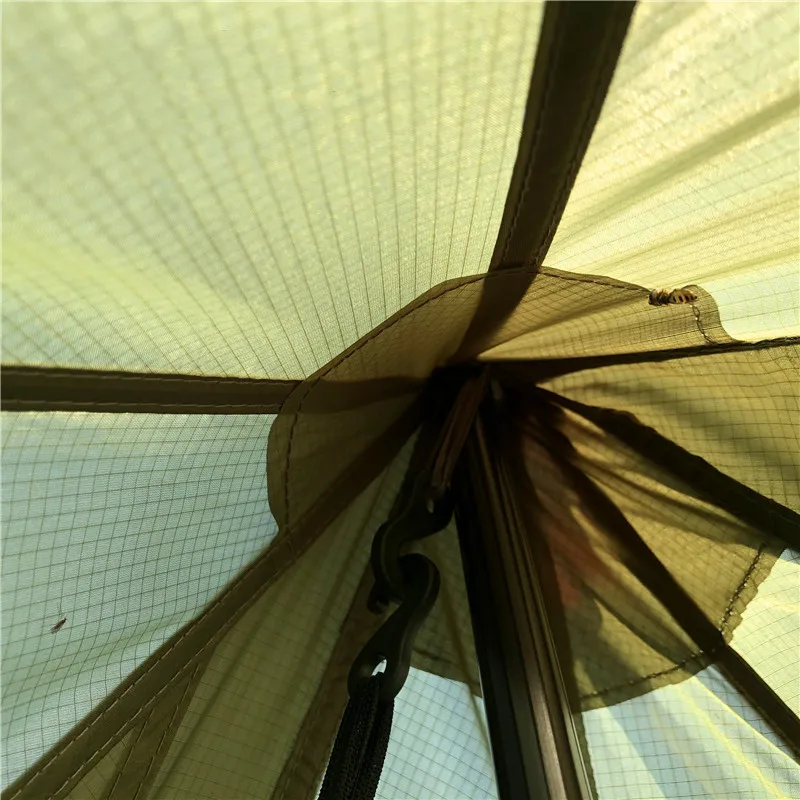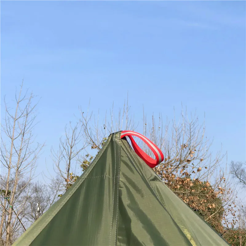 Палатка пирамиды обладает отличной защитой от ветра и стабильностью. Передние и задние двери предназначены для легкого доступа. Его можно использовать в качестве укрытия для кипящей воды, приготовления пищи, отдыха. Оснащен стойким полюсом из алюминиевого сплава, его также можно повесить непосредственно в подходящем месте без полюса, который удобно носить с собой.
