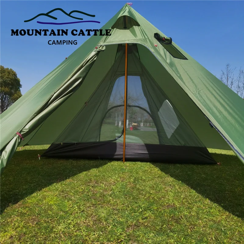 Ультралегкая палатка-пирамида, на 3-4 человек, для пешего туризма, пешего туризма, кемпинга, с дымовым отверстием, вигвам для приготовления пищи, наблюдения за птицами