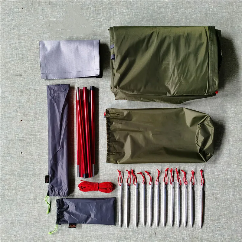Посылка: палатка, гвозди, ветряные веревки, палка, огнеупорная ткань, сумка для хранения