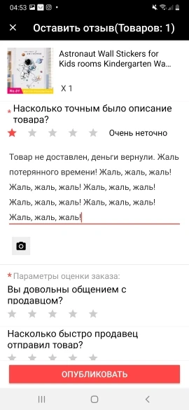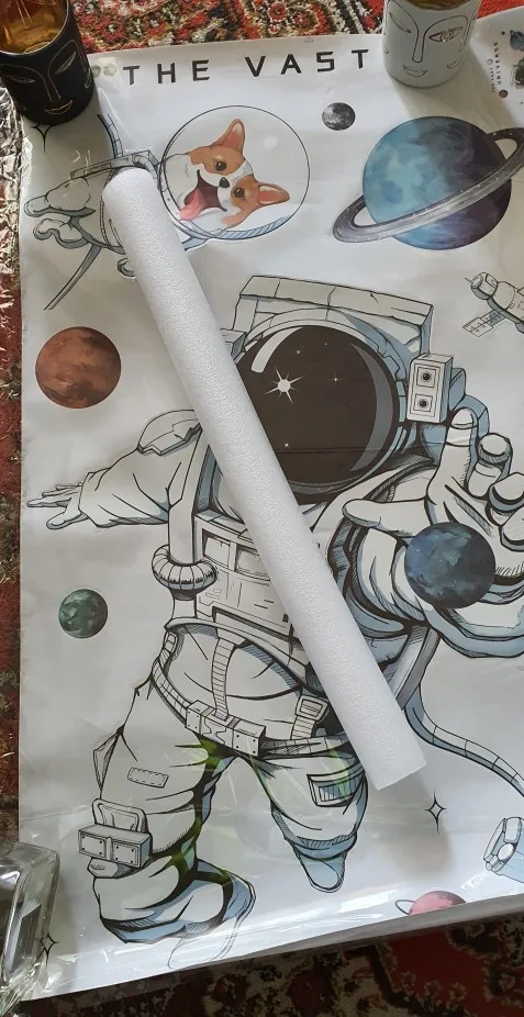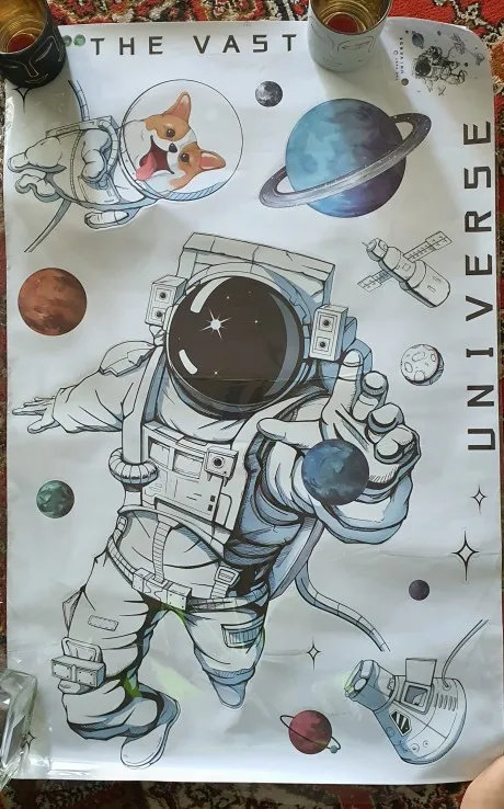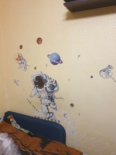 Всё отлично , упаковка и товар,заказ пришёл быстро . Сам продавец следил за моим заказом, я и не смотрела где мой заказ. Мне пришла смс и сегодня забрала и уже наклеила. Надеюсь, что держаться будет, т.к. я забыла ,что в этой комнате стены не гладкие, как в зале. За 5 минут в наклеила, очень легко снимает с бумаги. Я даже образец умудрилась использовать. Советую продавца и товар. Это сюрприз мужу в его кабинете, он очень любит всё что связано с космосом, а и собака наша то-же рыжая дворняга.