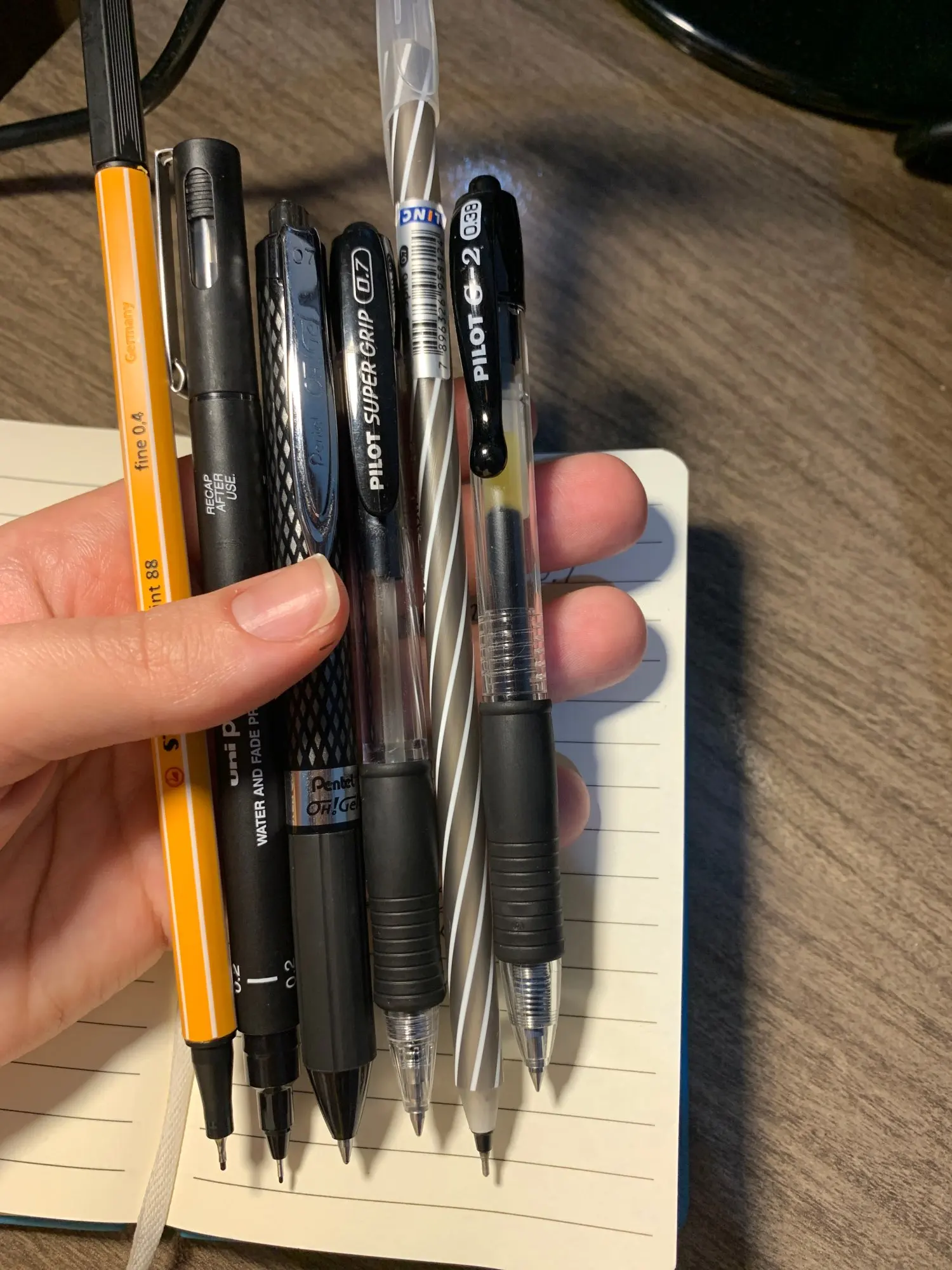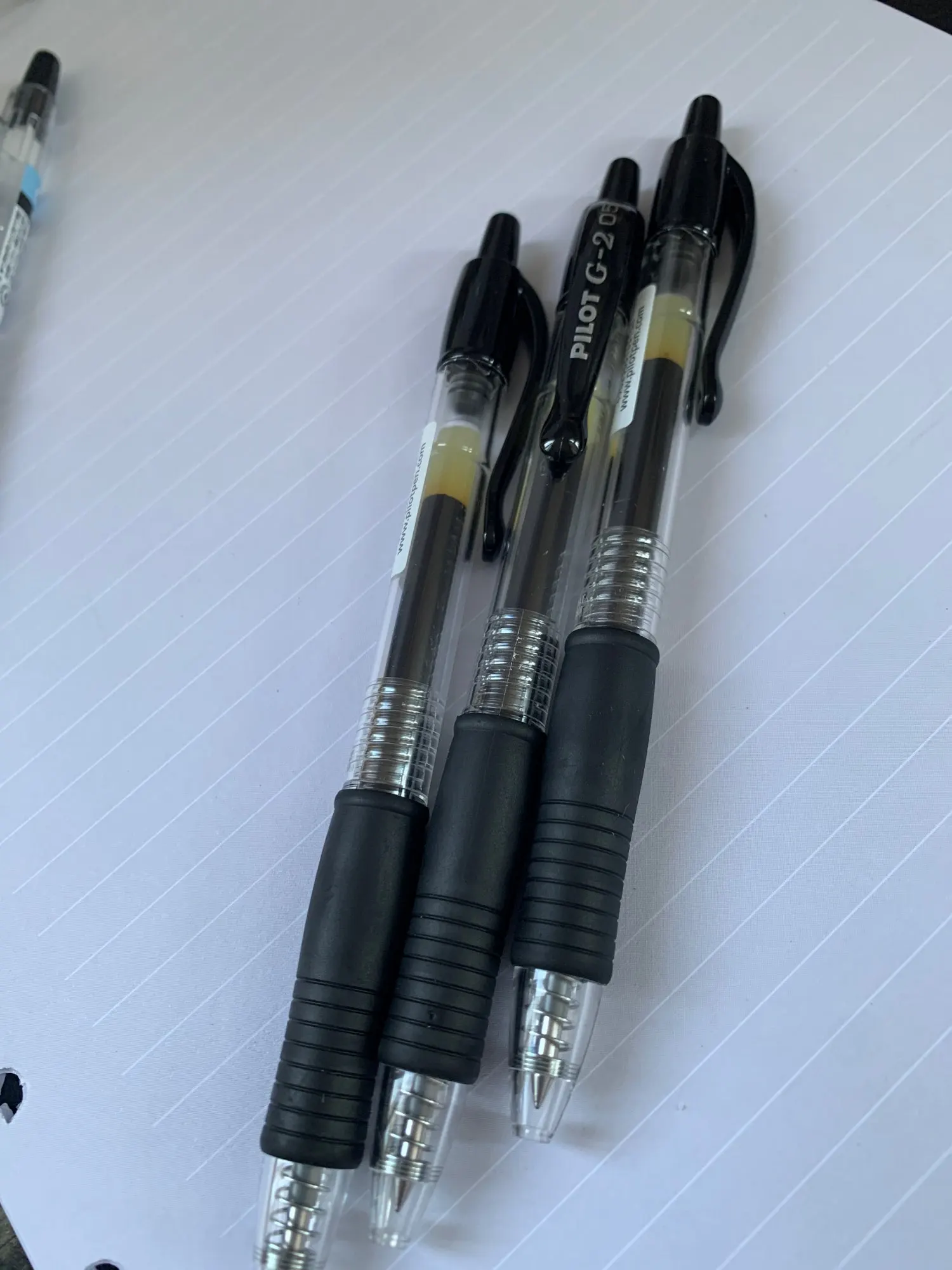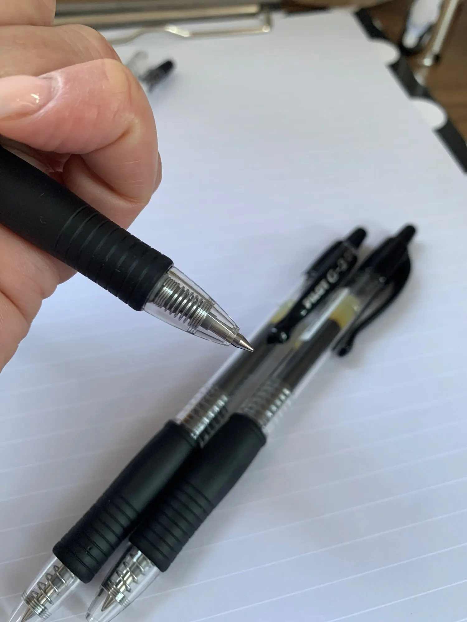 Canetas excelentes! Todas vieram funcionando perfeitamente e o traço é fino e a tinta é bem pigmentada. Vou alguma fotos das canetas que tenho que também possuem a ponta bem fina mas a Pilot G2 é bem mais confortável na pegada que qualquer uma. Aprovadíssima!