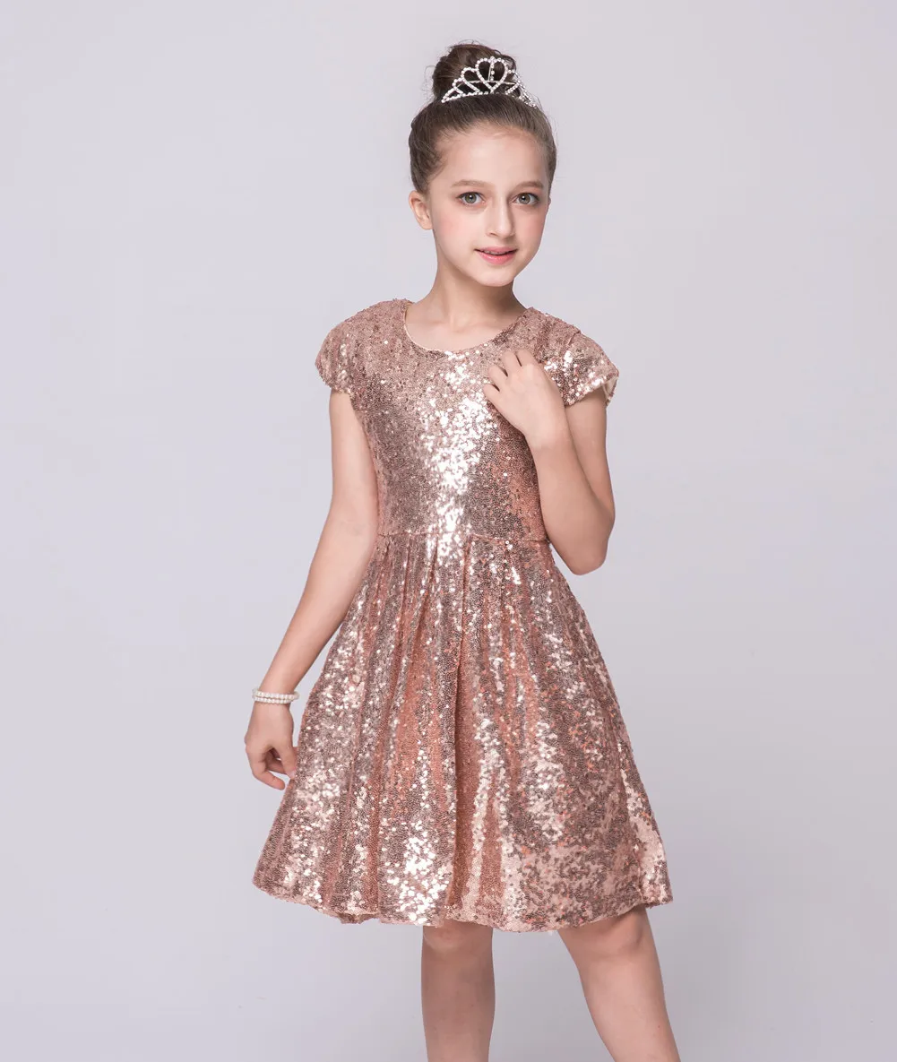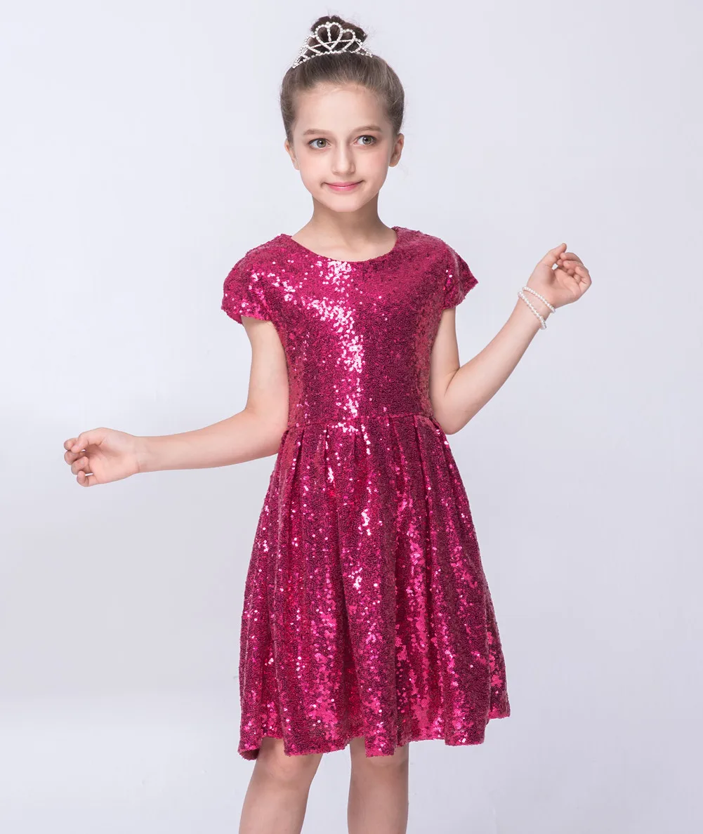 Модное платье для девочек, с блестками, с коротким рукавом, вечернее платье, блестящая бутиковая одежда для принцесс, цвет золотистый, розовый, красный, 2020