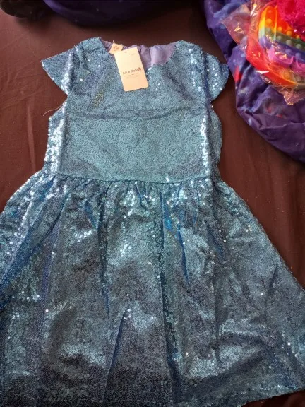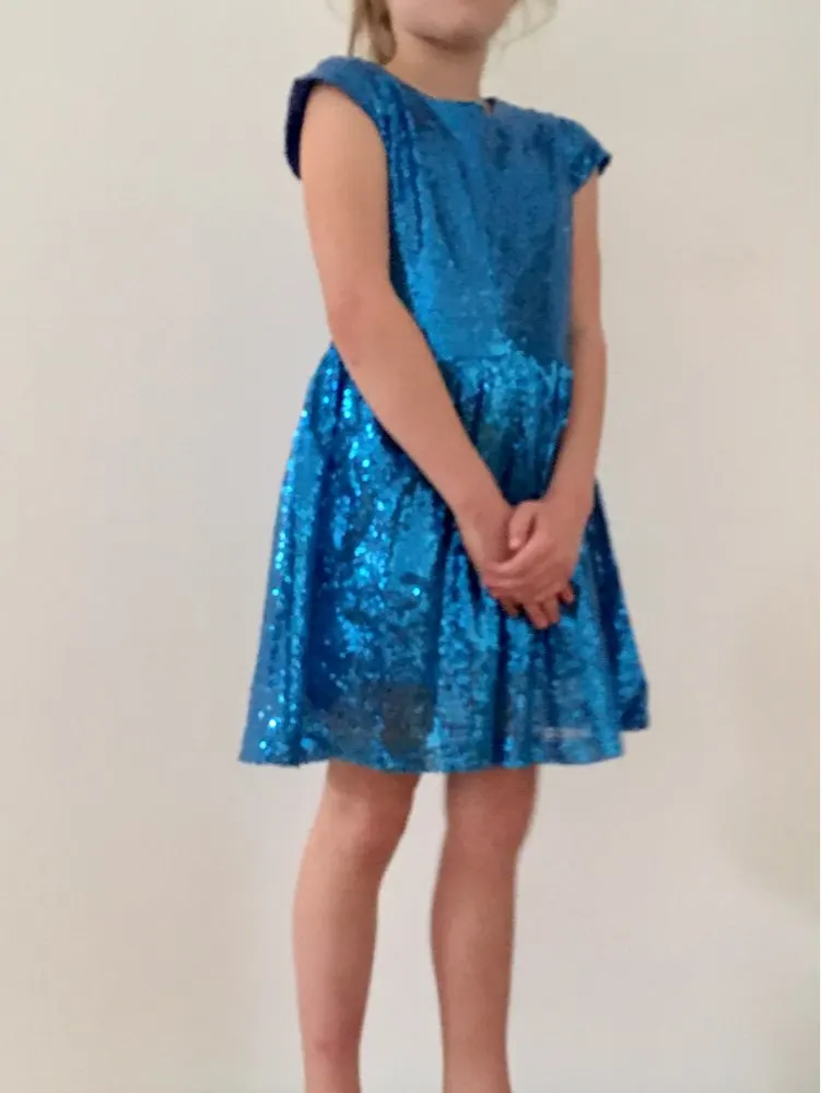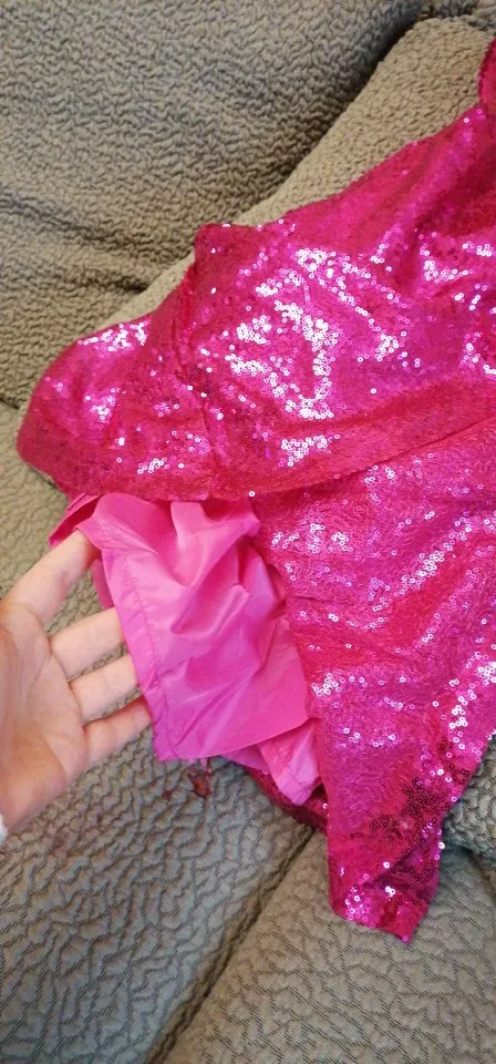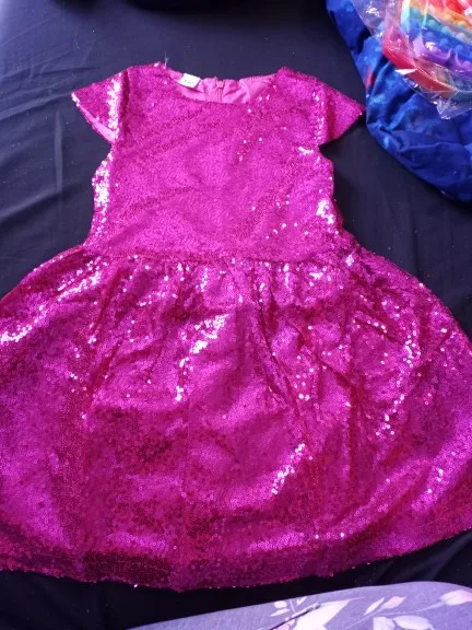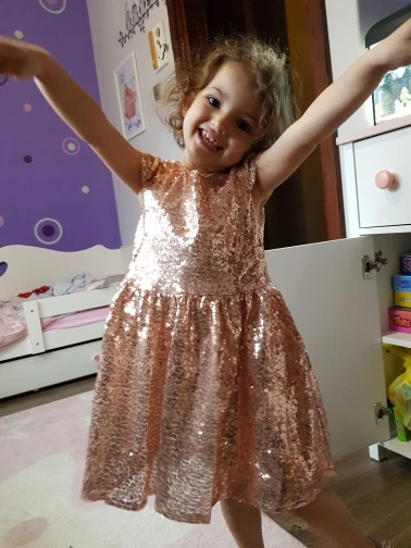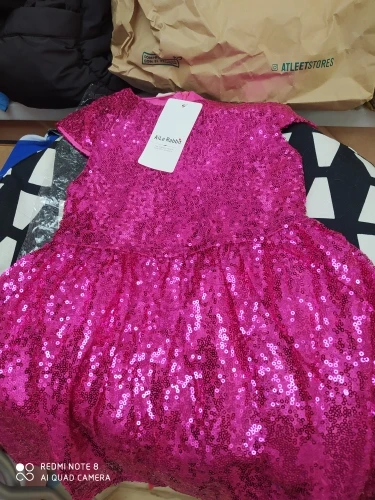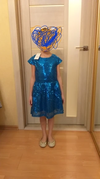 Платье - огонь! Блестит очень. Только маломерит конкретно, размер 120 впритык на рост 104. Доставка быстрая.