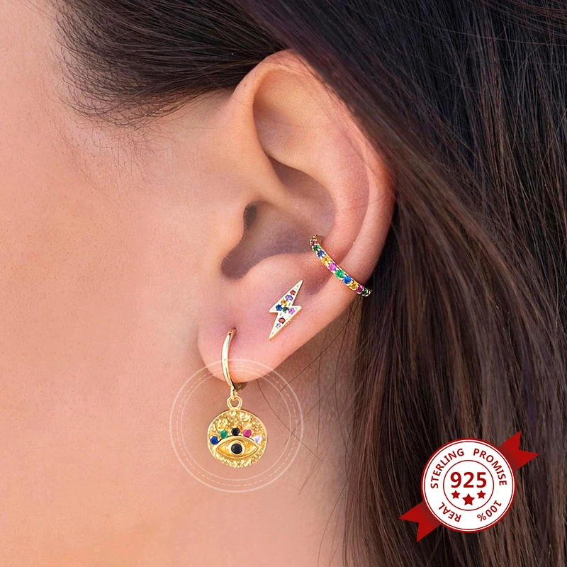 Серьги-кольца в европейском и американском стиле Huggie с голубым Цирконом