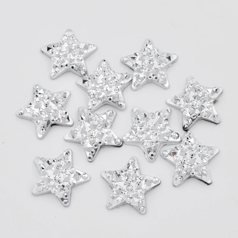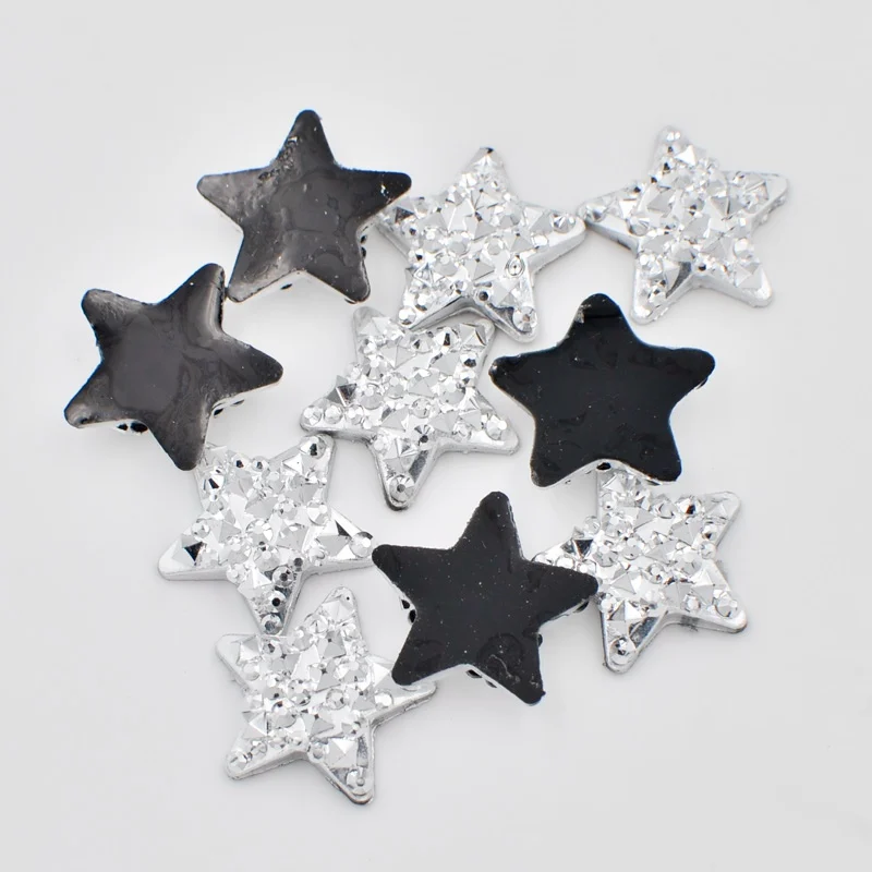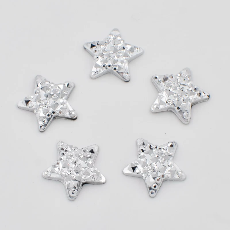50 шт. блестящие смолы 16 мм Серебряные звезды плоские задней стразы аппликация на одежду скрапбукинга ювелирные изделия DIY ремесло поставки OF216