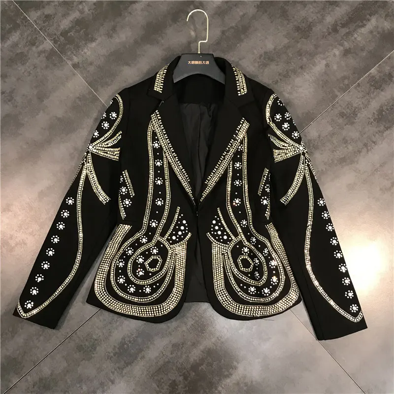 Осень 2020, модные женские куртки с золотыми бриллиантами, приталенные черные куртки и пальто в уличном стиле, блестящие Костюмные куртки