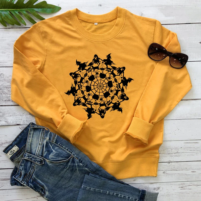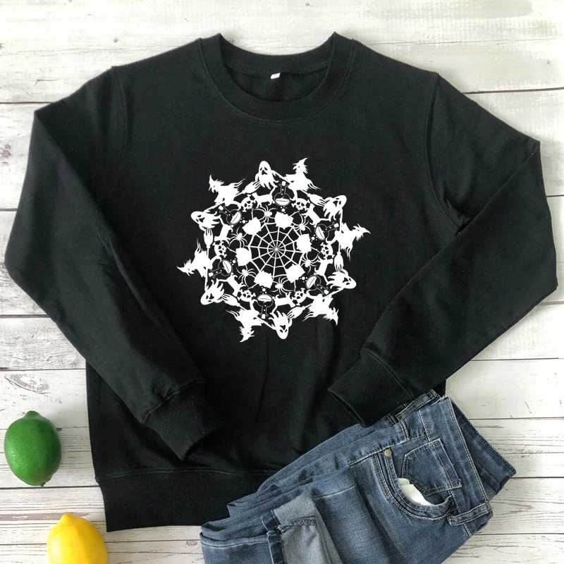 Свитшот на Хэллоуин с изображением мандалы, ведьмаров, призраков, женские пуловеры в винтажном стиле для праздника, Осенний Графический свитшот на Хэллоуин