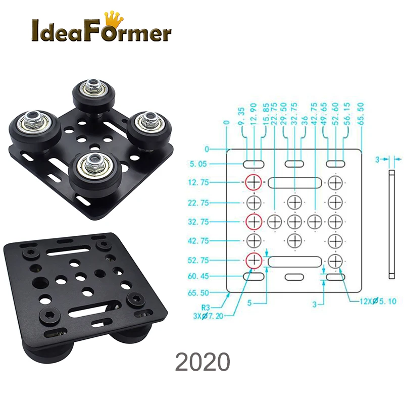 Тип: 2020 Белое колесо; 2020 Черное колесоМатериал: алюминиевый сплавСтандарт: европейский стандартРазмер пластины: Т3 мм x 65,5 мм x 65,5 ммПрименяется к: алюминиевому профилю с v-образным пазом 2020