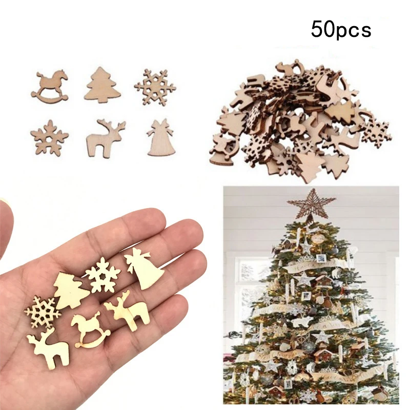 50 шт. Рождество деревянные подвески, украшения сделай сам деревянные поделки Рождественские елочные украшения снежинки украшения для рождественской вечеринки для дома