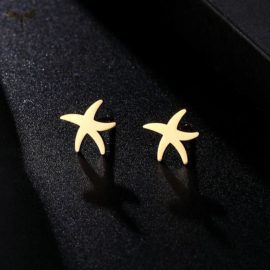 Серьги-гвоздики из нержавеющей стали, Золотые серьги в виде морской звезды, милые летние ювелирные изделия в стиле бохо, Женские аксессуары для перепродажи