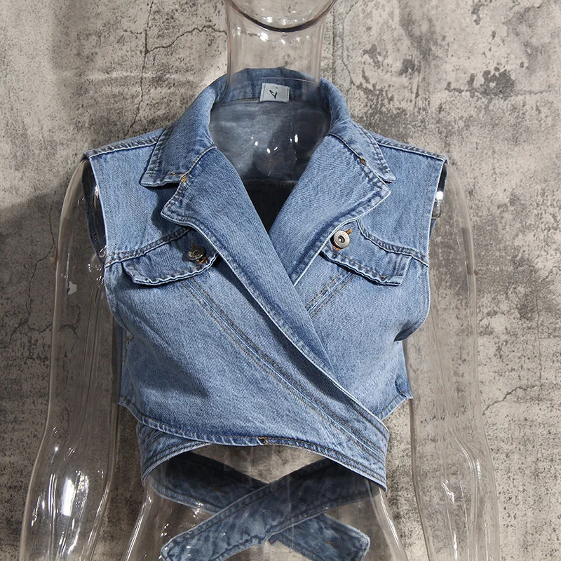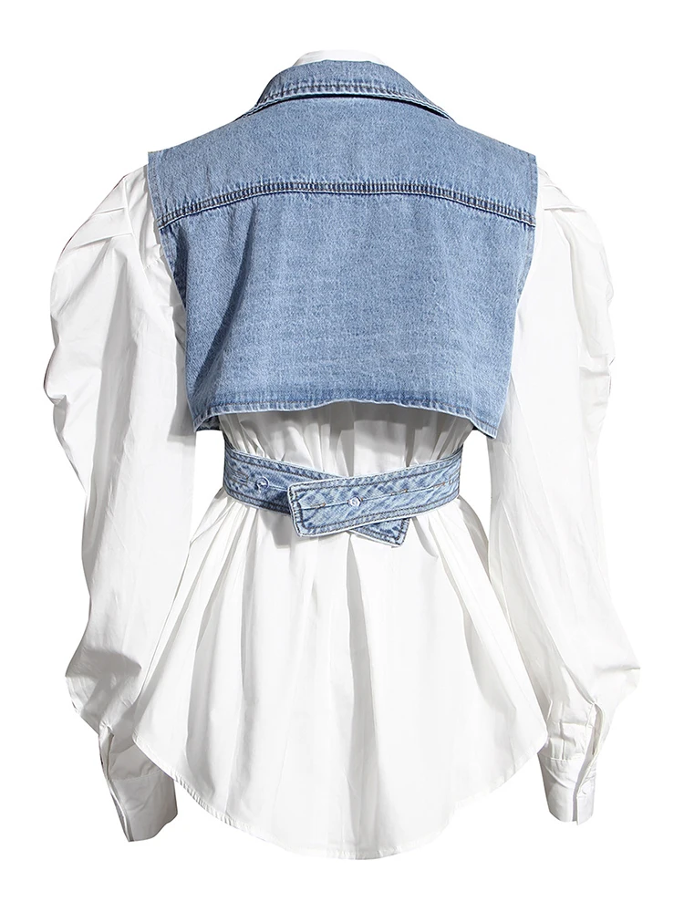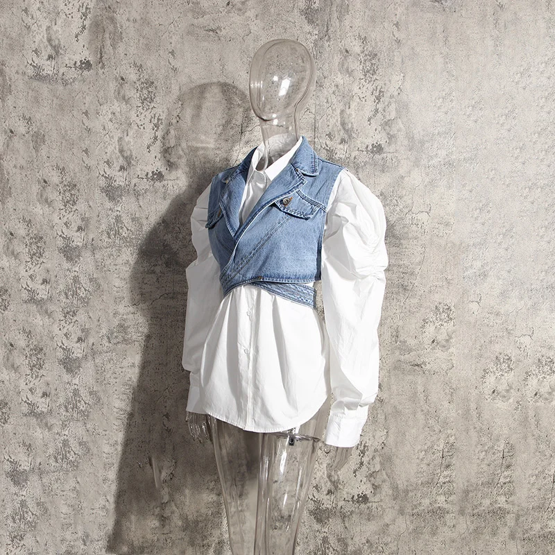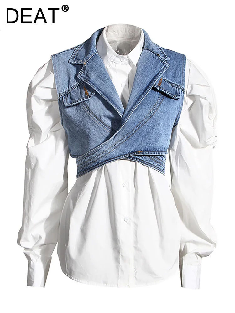 Женский джинсовый жилет DEAT, белая однобортная рубашка из хлопка, осень-весна 2022