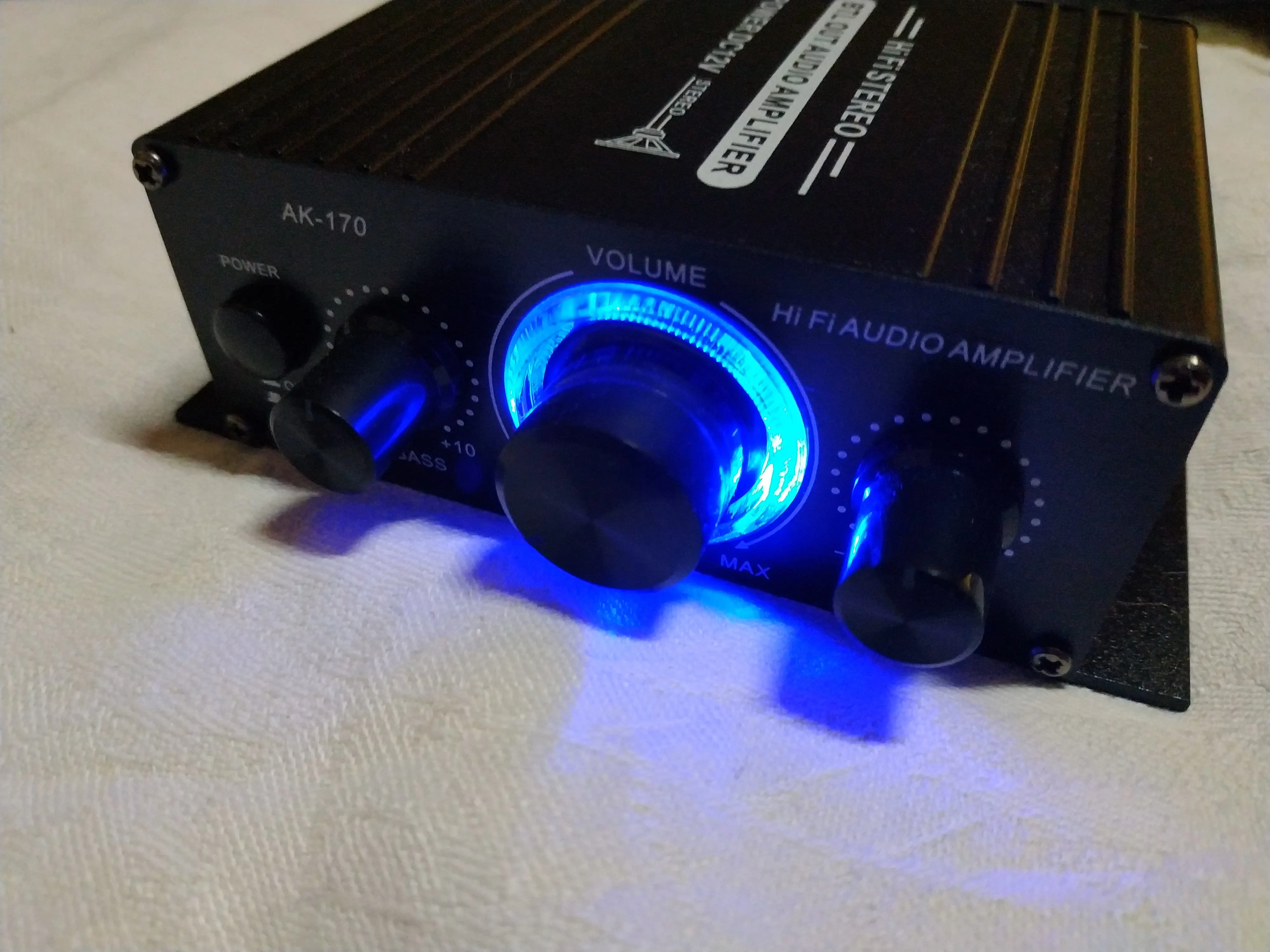 Почтовый пакет был вроде обычный, без пузырьков. Но в нём была картонная коробка, и в ней пакетик с пузырьками, в котором лежал усилитель. На вид он качественный, хороший, металлический. Метал толстый. Всё выглядит красиво и качественно. Пульта с ним в комплекте нету, и он не нужен. К нему ещё нужен блок питания на 12в и 5а. При включении кнопки питания, там где регулятор громкости загорается приятное синее свечение. В работе проверил, звук есть. Но толком ещё не тестировал. Блютуза там нету, именно поэтому его и взял, мне нужно именно без него. Распаковку вы можете посмотреть тут: youtu.Be/EFOcom9KCRI