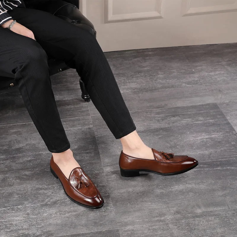 Новинка; Мужские повседневные туфли в британском винтажном стиле; Кожаные модельные туфли ручной работы; Деловые Свадебные лоферы с кисточками; Оксфорды без застежки