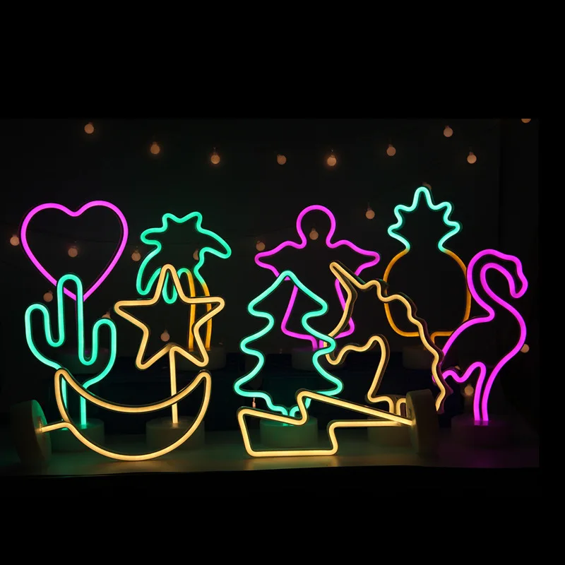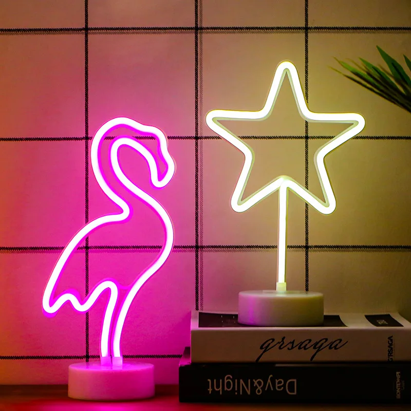 Светодиодный неоновый светильник, красочные радужные USB фламинго, единорог, милые радужные неоновые настольные лампы, спальня, окно магазина, домашний декор, неоновые лампы