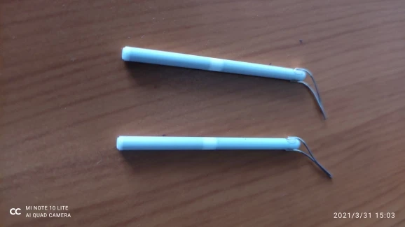 На странице продавца вы видите бренд JCD, который не отображается на полученных, поэтому они не являются оригинальными JCD, плюс два соединительных кабеля тоньше, чем оригинальные. Они измеряют 135 ом. Фото оригинала с двумя полученными нагревателями.