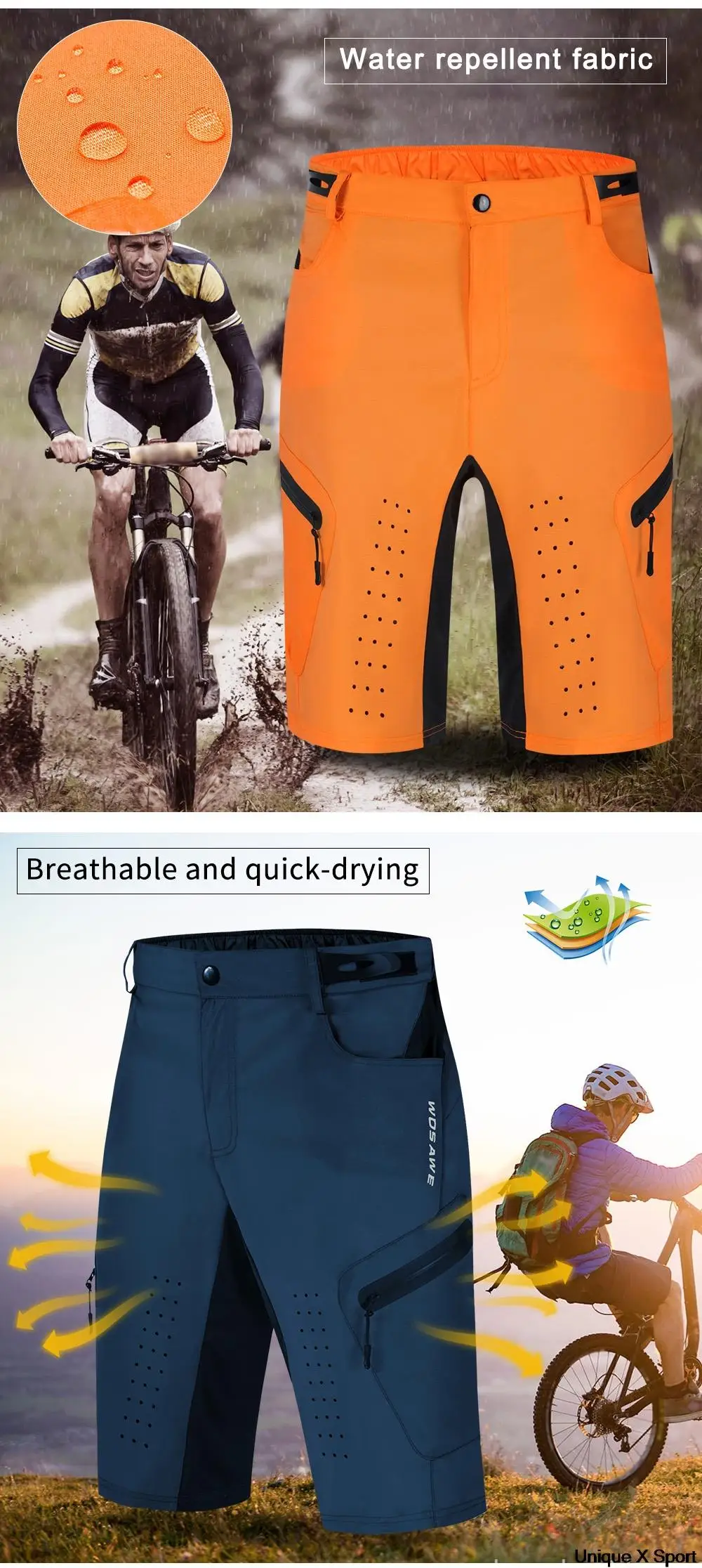 Мужские велосипедные шорты WOSAWE для горных велосипедов, светоотражающие дышащие водоотталкивающие велосипедные шорты, свободные шорты для горных велосипедов, Бермуды для велоспорта