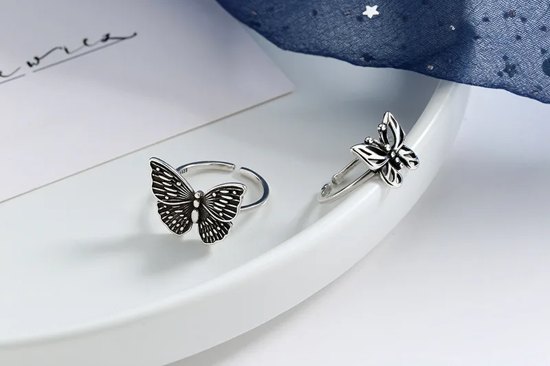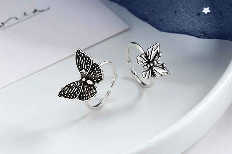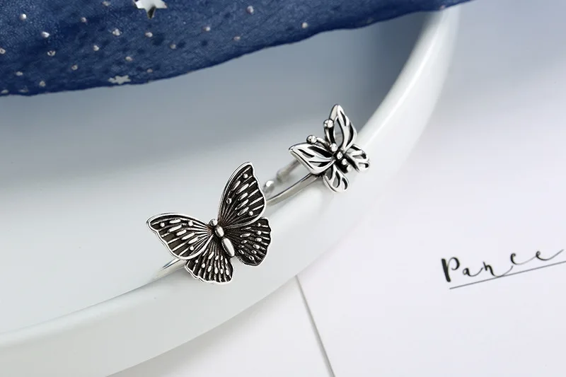 Женское винтажное Открытое кольцо ANENJERY, серебряное регулируемое кольцо в виде бабочки