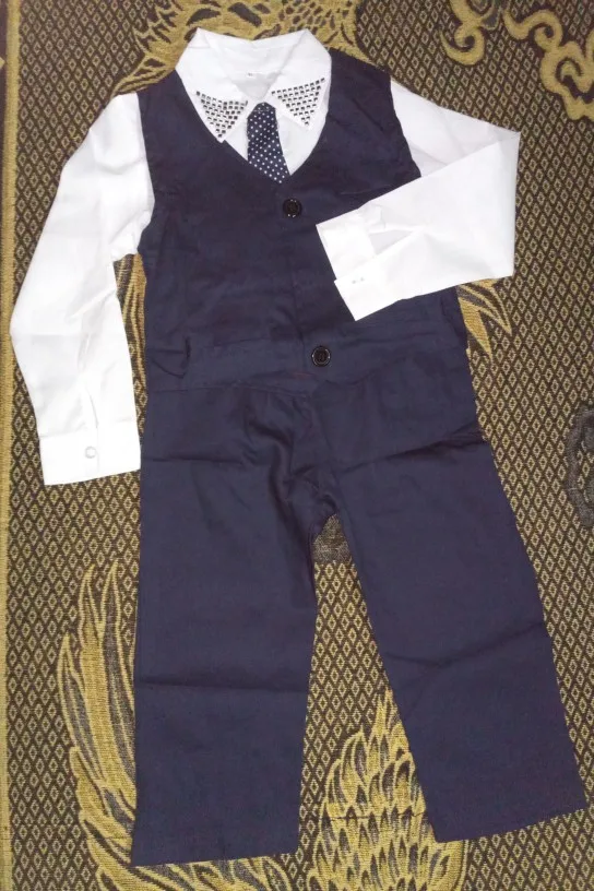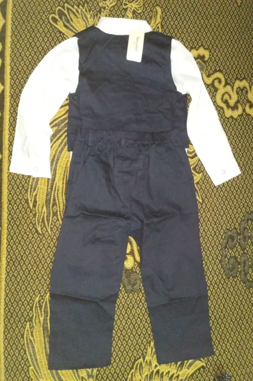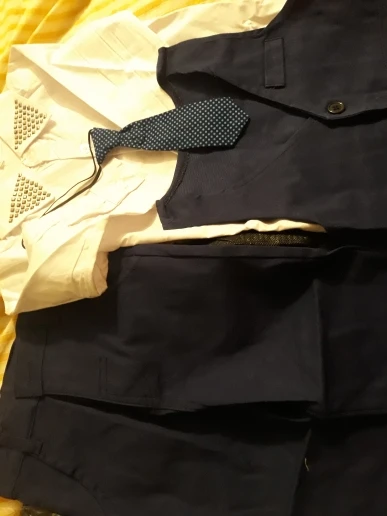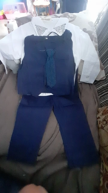 Komplektu saņēmu pēc 20 dienām, ātra piegāde. Krekls ar kaklasaiti iepakots atsevišķā maisiņā un plus pārējās detaļas kopā iepakotas lielākā maisiņā. Apģērbam kvalitāte laba izņemot neizdevušos kaklasaiti. Bikses un veste ir diezgan plāna bet blīva kokvilnas auduma. Biksēm priekšpusē sānos ir kabatas, vestei tikai dekoratīvas kabatas. Krekls tiešām elegants. Pirku dāvanai 3gadi un 4 mēneši vecam puisītim, pagaidām nav mērīts Ļoti atsaucīgs un komuniscējošs pārdevējs. Par neskaisto kaklasaiti pārdevējs man atgrieza 1 eiro. Iesaku gan veikalu, gan pārdevēju, gan preci. Paldies par sūtījumu.