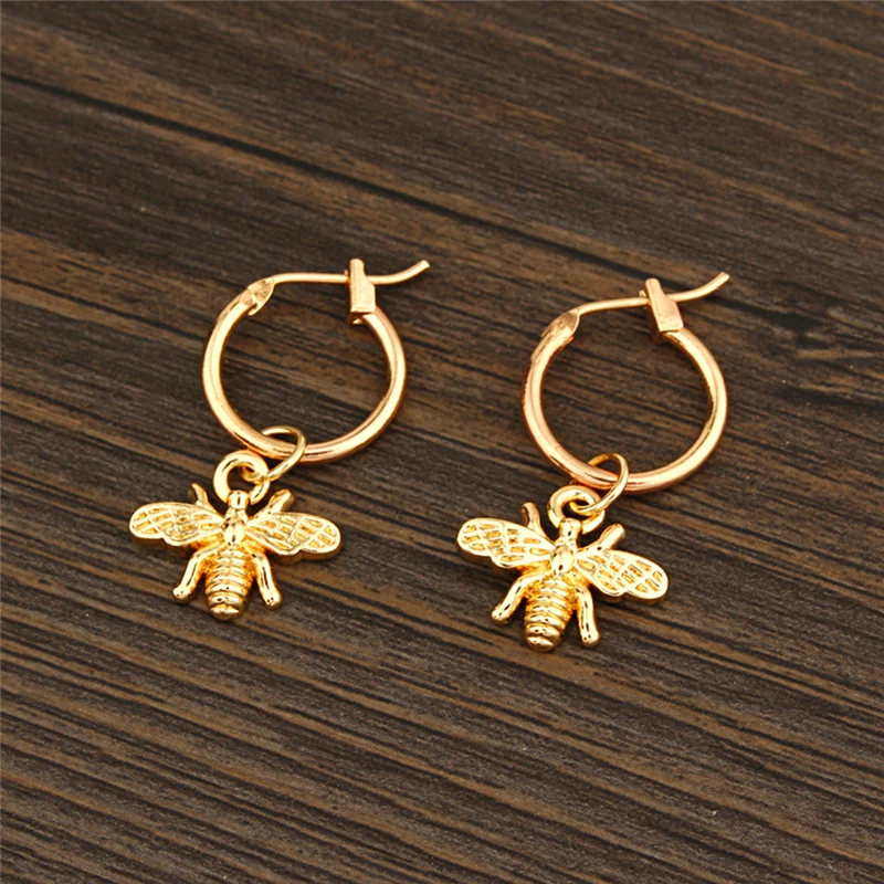 Классические Золотые маленькие серьги в виде пчелы из сплава для женщин, характерные повседневные серьги для девочек, ювелирные изделия в подарок