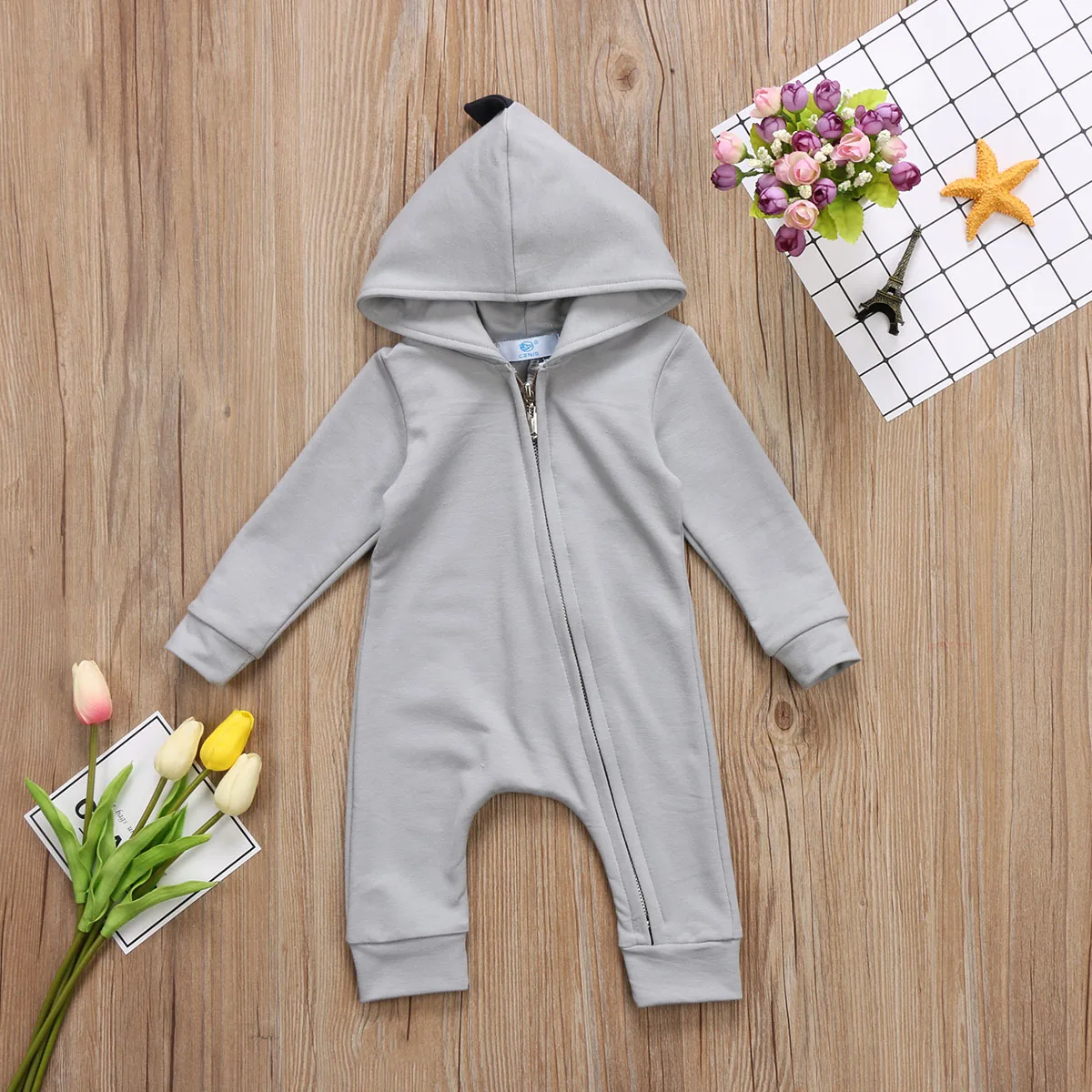 Осенне-зимний детский хлопковый комбинезон для новорожденных; Комбинезон с длинными рукавами для маленьких мальчиков и девочек; Костюм динозавра; Игровые костюмы с капюшоном