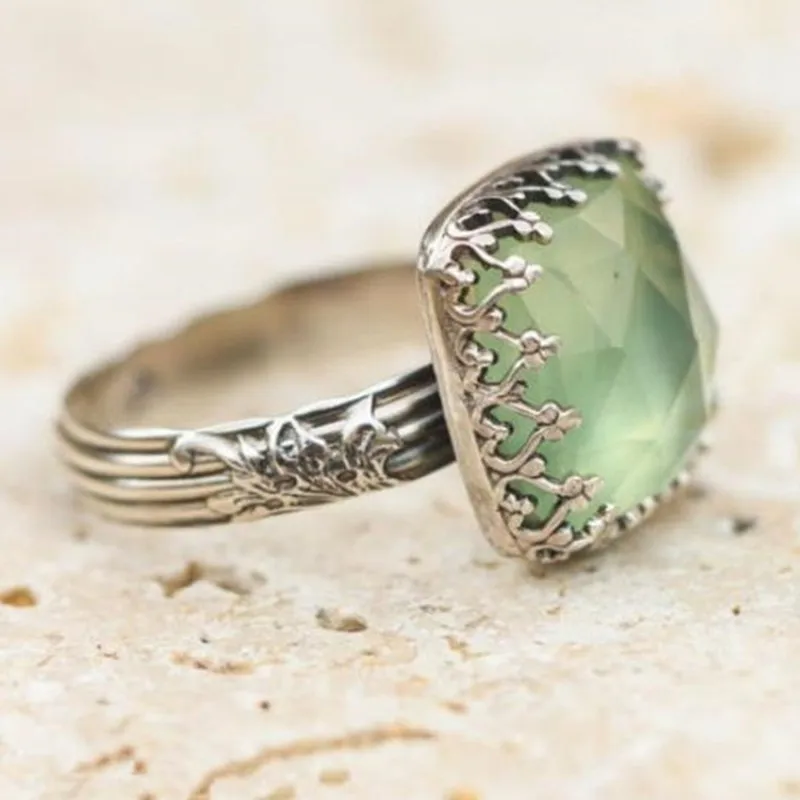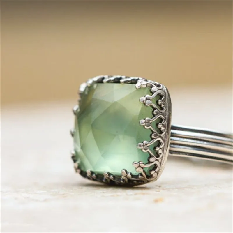 Ретро антикварные серебряные Квадратные Кольца, натуральный Перидот, стразы для женщин и мужчин, богемные ювелирные изделия, подарок, квадратные кольца